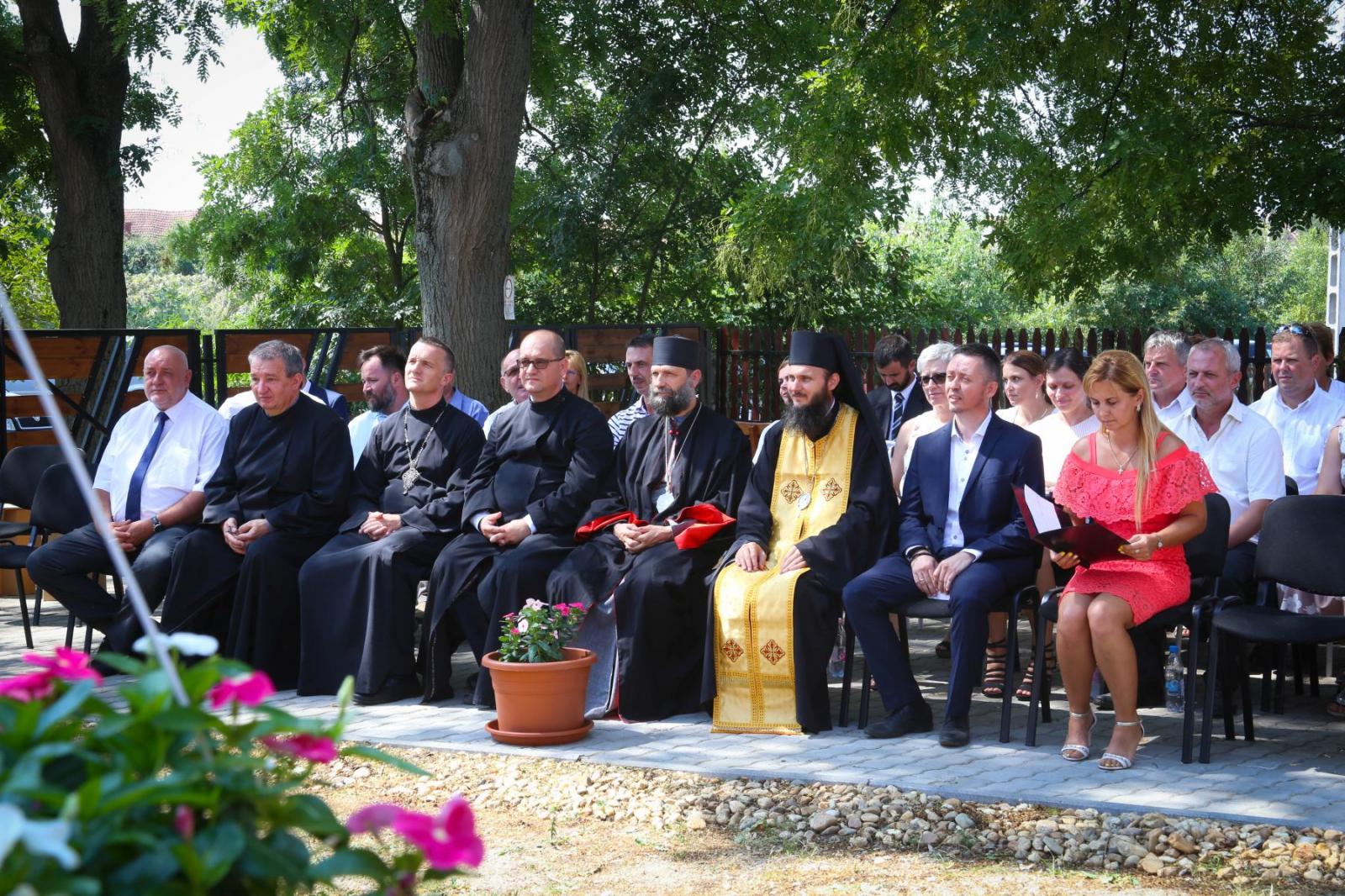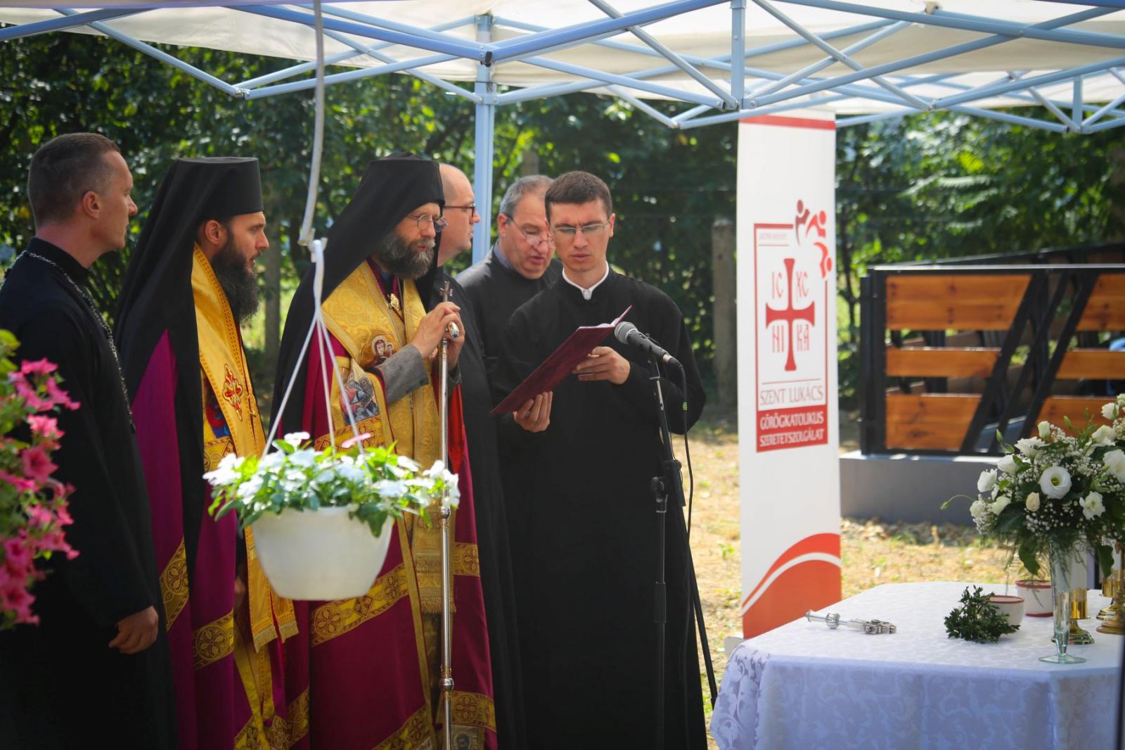 Az ünnepség a házszentelés szertartásával kezdődött, melyen jelen volt Kocsis Fülöp metropolita, Szocska A. Ábel nyíregyházi megyéspüspök, dr. Seszták István és dr. Papp Tibor főhelynök atyák és az idősek otthonában lelki gondozást végző Kiss Andor esperes atya is. Miután a főpásztorok megszentelt olajjal kereszt alakban megkenték a ház központi termének falait és szentelt vízzel meghintették az épület helyiségeit, a metropolita prédikációjában a felolvasott evangéliumi szakaszhoz fűzte gondolatait. A szentelések során a Zakeus történetét épp azért olvassák fel, mert „Jézus belépett Zakeus házába és ezzel minden megváltozott”– kezdte az igemagyarázatot az atya. „Ez történik házszenteléskor is: Jézus belép a házba, s attól kezdve minden megváltozik. Látszólag nem történik semmi, az olajjal való megkenés után néhány kereszt és néhány csepp szenteltvíz marad a falon. S bár ennek – nem úgy, mint a felújításnak – nincs külső nyoma, mégis ez az igazi átalakulás: amikor Jézus belép a házba. Ezen keresztül azok életébe, akik itt laknak és dolgoznak. Jézus az, aki megváltoztat mindent.”