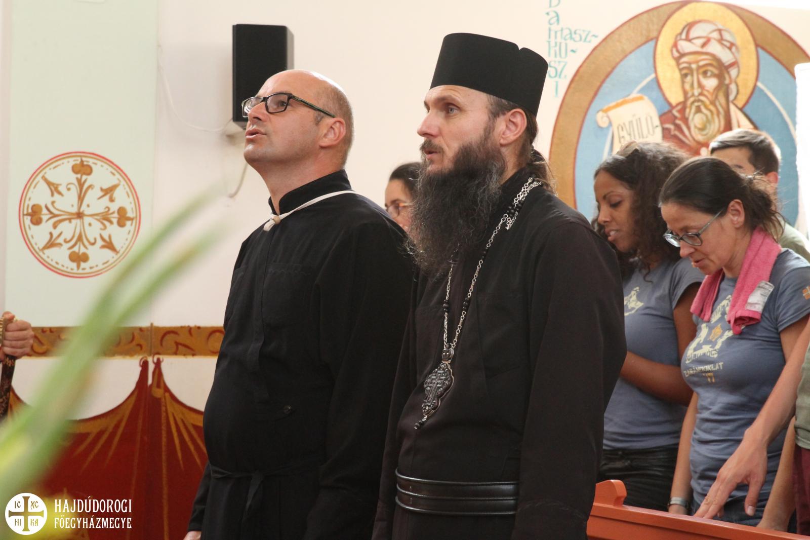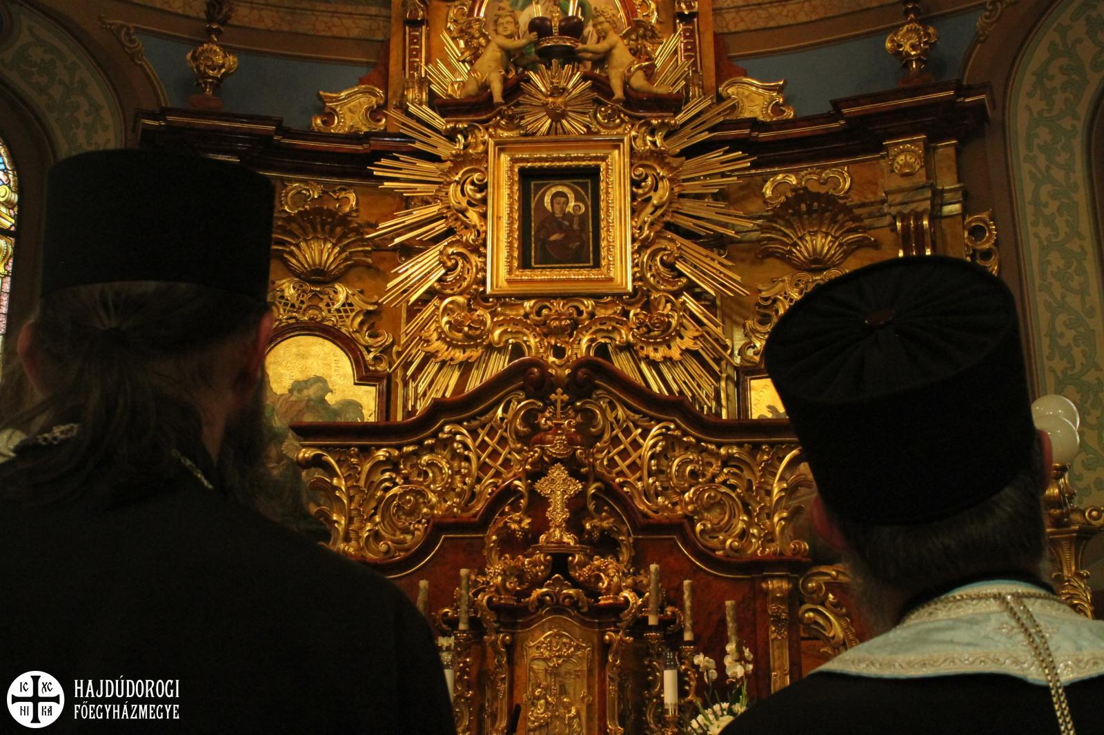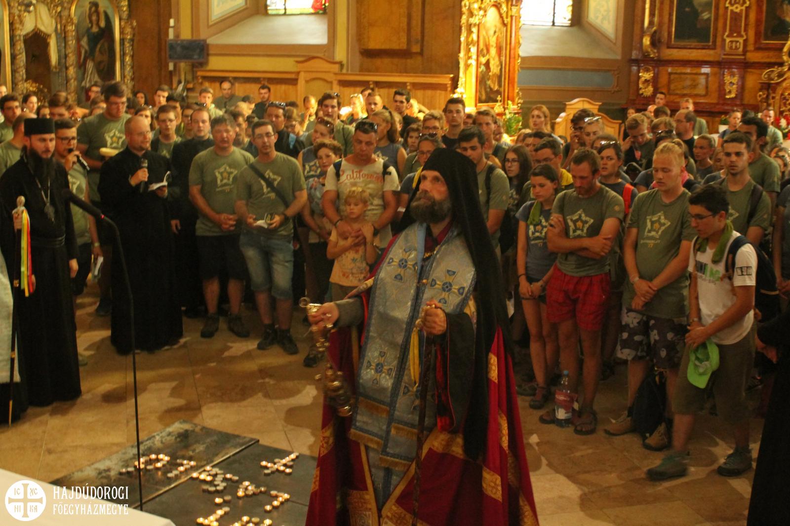 Nagyjából délután három órára érkeztek meg Máriapócsra, már teljes létszámmal, élükön a három főpásztorral. A kb. 400 ember együtt vonult a Kegytemplomba, ahol a Paraklisz szertartását végezték el. „Boldog, aki hitt annak a beteljesedésében, amit az Úr mondott neki!” Oroszt Atanáz miskolci püspök prédikációjában úgy fogalmazott: „Boldog vagy te is zarándok, hogy hittél a megérkezésben! Boldog vagy, hogy az Istenszülő szentképe elé fáradt testtel, de friss lélekkel érkeztél meg!”