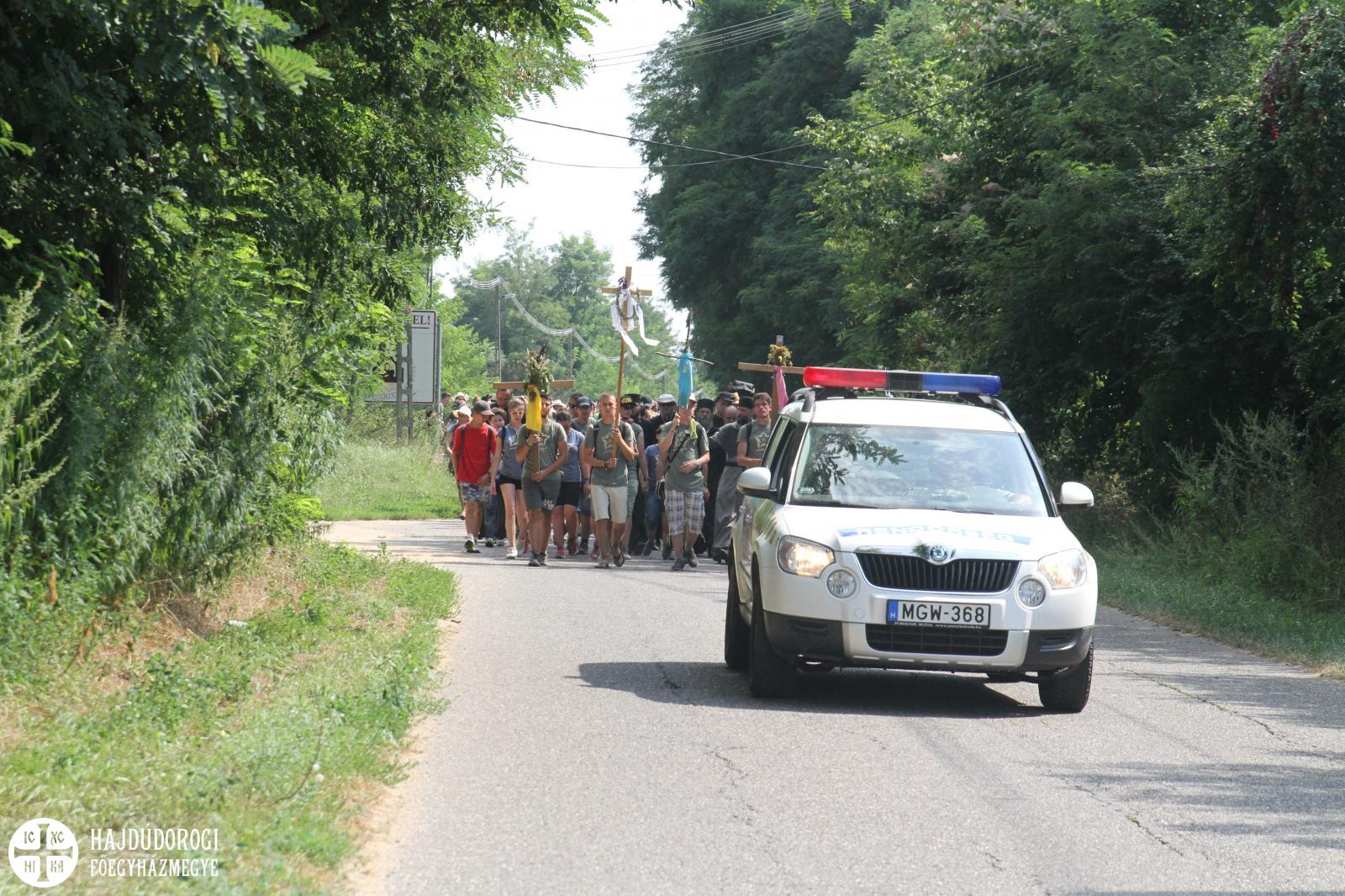 Vándorbotot elő: irány Nyírbogát, ahol már Atanáz atya várta őket! Az út során Mária énekektől zengett a környék. A rövid távot hamar lesétálták a zarándokok, meg is lepődtek, hogy ma csak ennyit mennek....nem véletlen, hiszen egyre közelebb vagyunk a célhoz! Hogy együtt érkezzünk meg a Szűzanyához! Simon László, képviselő úr is érdeklődve várta a csapatot Nyírbogáton, és pár kedves szóval köszöntötte őket, illetve a főpásztorokat. Milyen jó érzés ez az ifjaknak: Fülöp, Atanáz és Ábel atya is együtt vonul be velük a Nemzeti Kegyhelyre!