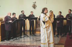 1912-ben visszahelyezik Kárpátaljára, majd 1919-ben huszti parókussá és kerületi esperessé nevezik ki. Itt keletkezik 1921-ben az a férfikarra írt szakrális zene, ami ezen a Liturgián elhangzott.