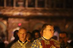 Este virrasztás kezdődött: az Akathisztosz mélytartalmú szövegeit többszólamú énekléssel imádkozták végig az Istenanya tiszteletére. Majd litiás nagyvecsernyét végeztek, ami éjszakai körmenettel és agapéval zárult. Sokan kitartottak a hajnalig tartó utrenye imádkozásában is.