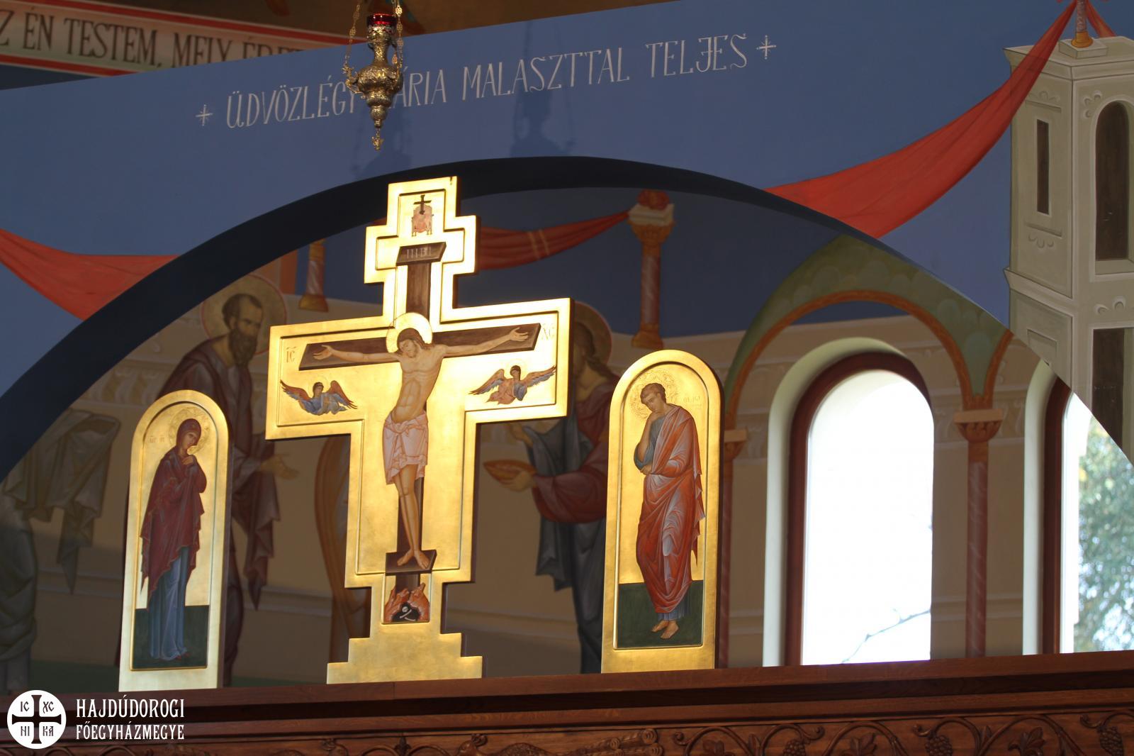 A Szent Kereszt templom alapkövét 2011 novemberében tették le, majd 2013-ra lett szerkezetkész az épület, amit végül szeptember 13-án szenteltek fel. Az ortodox ikonográfia hagyományait követő belső templomkifestés a hívek nagylelkű adományainak köszönhetően évekkel később ugyan, de teljes pompájában lett átadva 2020 tavaszán. A szemet gyönyörködtető ikonosztazion és a falképek fölszentelése a templom búcsújának napján történt szeptember 19-én, három püspök (Fülöp és Ábel görögkatolikus valamint Marton Zsolt római katolikus püspökök) és számos görög- és római katolikus pap részvételével.