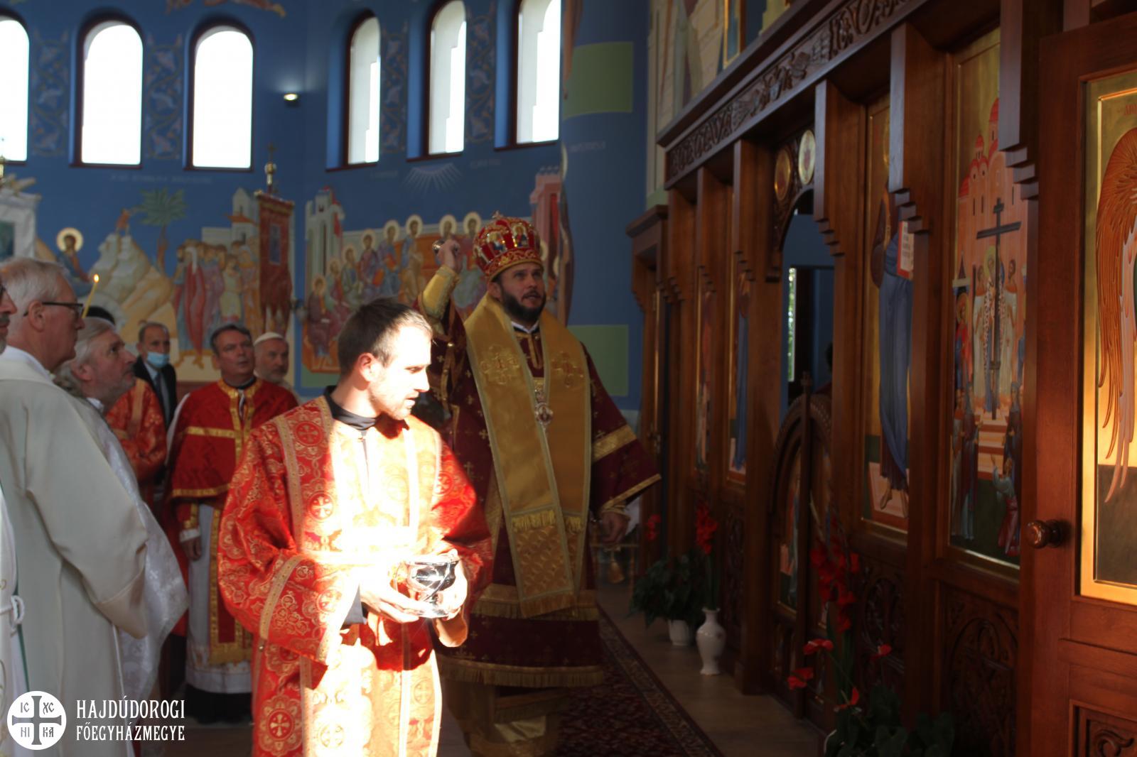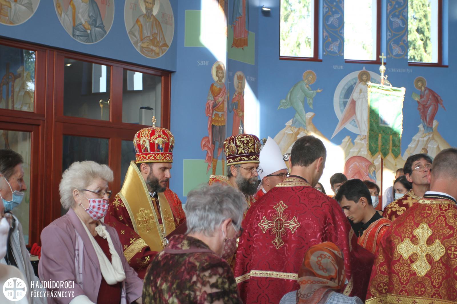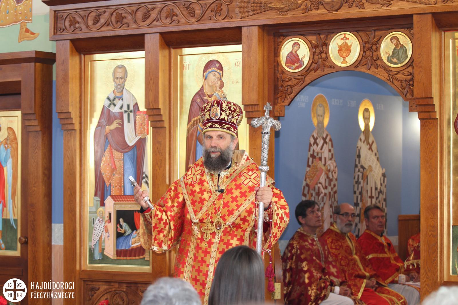 Az újonnan épített templomok közül ezt mondhatjuk a legszebbnek – kezdte beszédét az érsek-metropolita atya. Köszönet illeti mindazokat, akiknek részük volt benne, hogy ilyen gyönyörű görögkatolikus templom legyen Gödöllőn. Hála az adományozóknak, az építőknek, a tervezőknek, a munkásoknak és az egyházközség összes tagjának, akik munkálkodtak benne és imáikkal kísérték gyarapodását, épülését, szépülését. Köszönet a Jóistennek, aki mindezt elindította a lelkünkben és megengedte, hogy az itteniek mindezt végbe is vigyék.