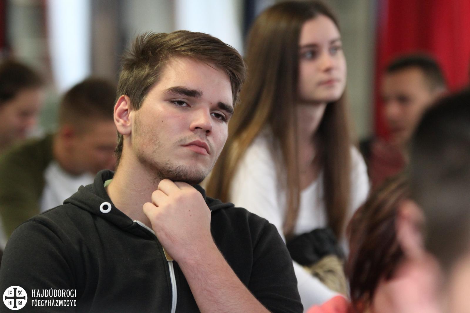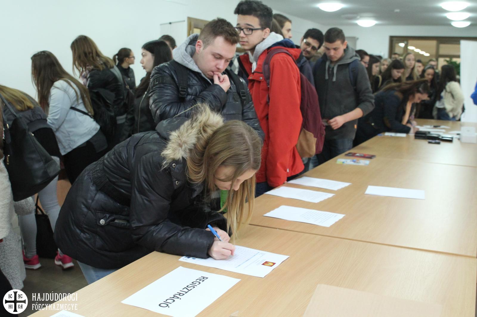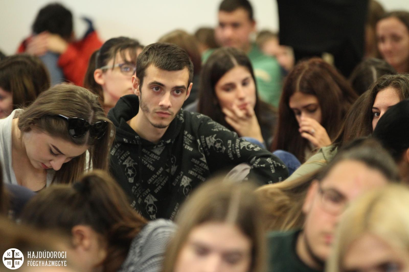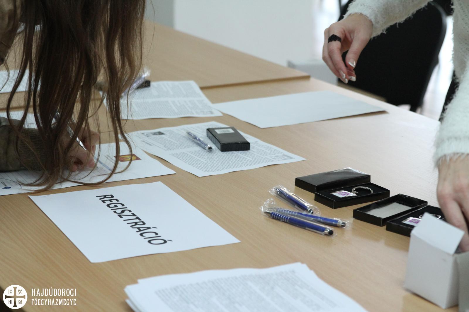 A fiatalok a regisztráció során ajándékot is kaptak a szervezőktől, lelkesen csatolták fel az új, Metropóliás kulcstartójukat a meglévők mellé. Kezdésként az Emmánuel Zarándokház emeleti előadójában köszöntötte őket dr. Seszták István, főhelynök atya, aki bíztatta őket, hogy nyitott szívvel vegyenek részt a mai napon. Mint mondta: „a mai zarándoklatnak az elsődleges célja, hogy a görögkatolikus intézményeinkben az érettségi előtt álló fiatalokat kicsit közelebb hozzuk egymáshoz. És persze itt Máriapócson a jó Istenhez is.