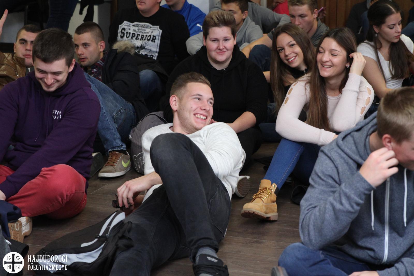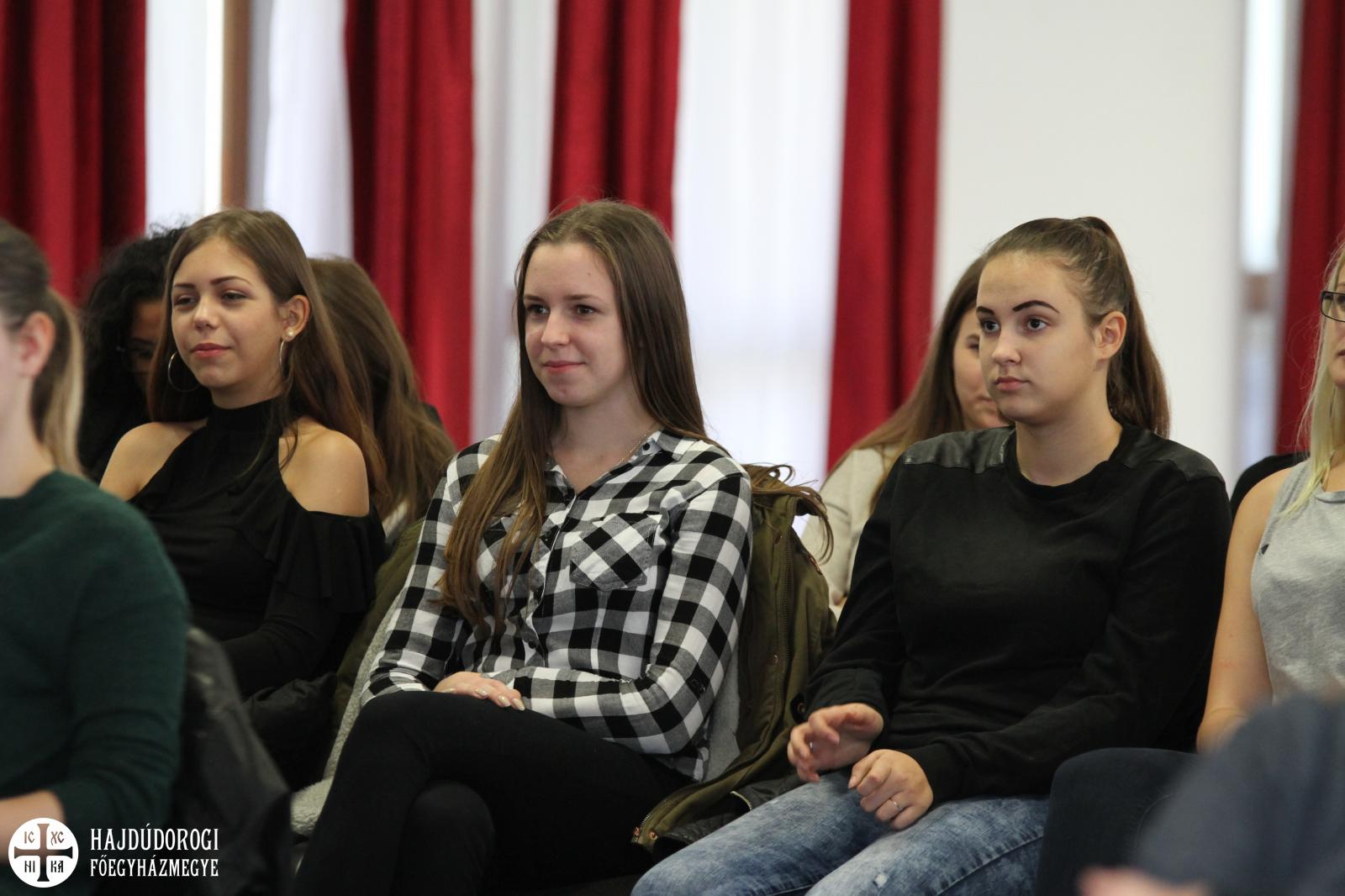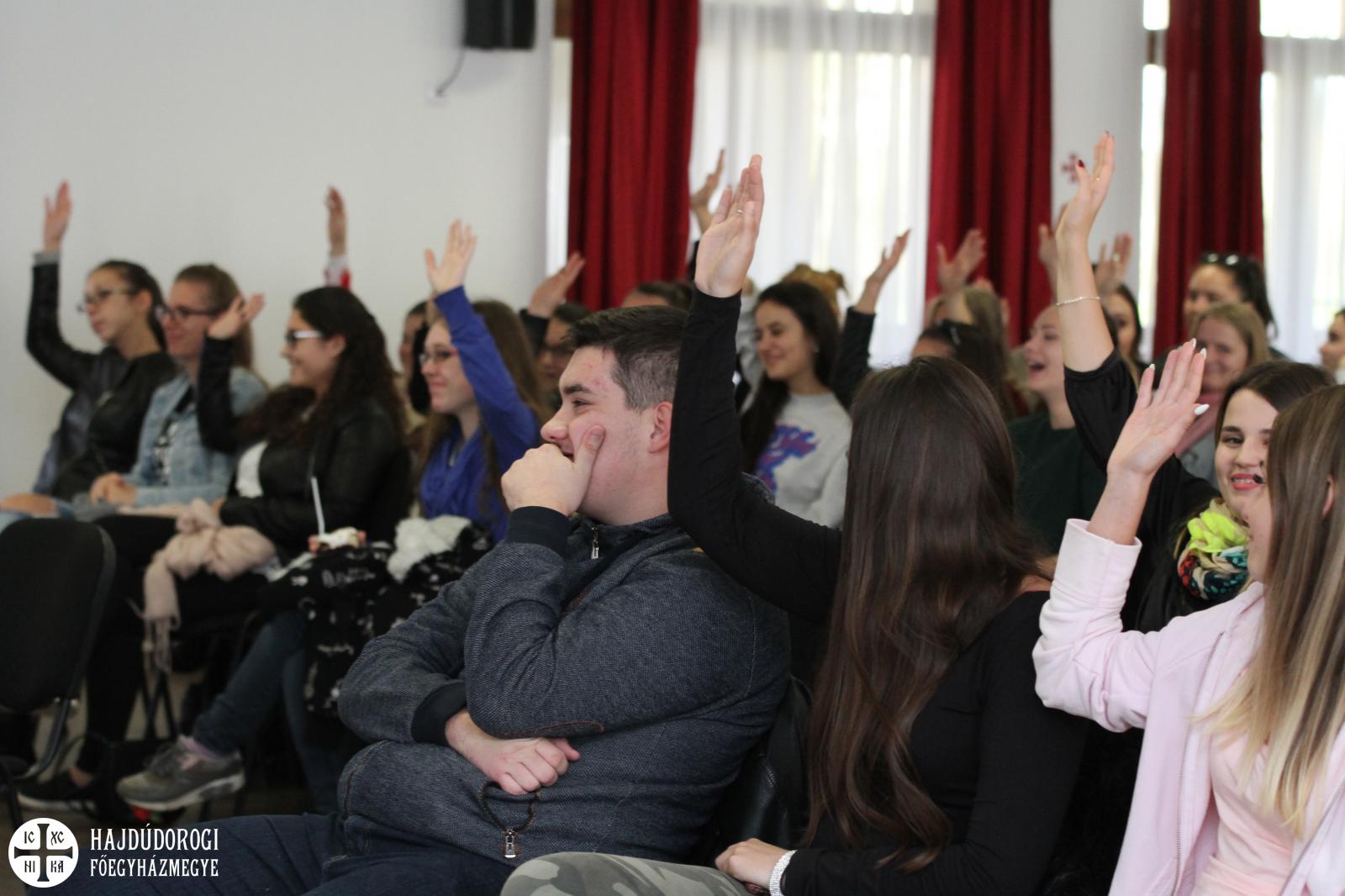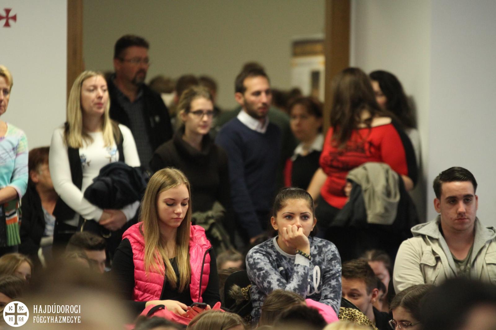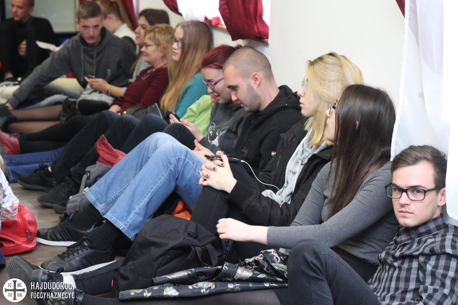 A fiatalok a regisztráció során ajándékot is kaptak a szervezőktől, lelkesen csatolták fel az új, Metropóliás kulcstartójukat a meglévők mellé. Kezdésként az Emmánuel Zarándokház emeleti előadójában köszöntötte őket dr. Seszták István, főhelynök atya, aki bíztatta őket, hogy nyitott szívvel vegyenek részt a mai napon. Mint mondta: „a mai zarándoklatnak az elsődleges célja, hogy a görögkatolikus intézményeinkben az érettségi előtt álló fiatalokat kicsit közelebb hozzuk egymáshoz. És persze itt Máriapócson a jó Istenhez is.