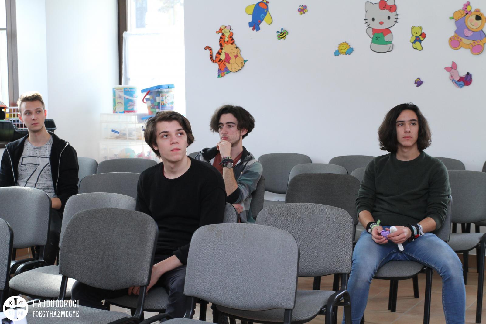 A Paraklisz után már éppen beköszöntött az ebédidő, majd jöttek az előadások a tematikus műhelyekben. Az informatika területéről Katona Tamás beszélt a fiataloknak, akik elképedve hallgatták legújabb fejlesztéseit és munkáit.