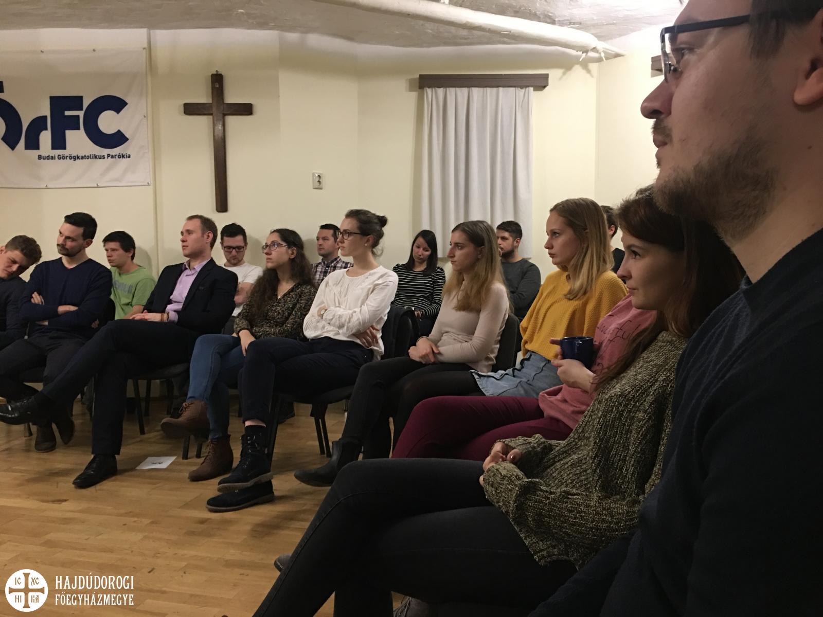 Itt mindenki olyan szép! – állapítom meg pár perccel érkezésem után, miközben több szólamban éneklik az esti vecsernyét. Nem a reklám kedvéért mondom, de olyan fiatalokat ismertem meg ezen az estén, akiknek a társaságában fel lehet töltődni. Nem csoda, hogy nem csak görögkatolikusok járnak ide, vannak római katolikusok is, de bárkit szeretettel várnak, aki érdeklődik a meghirdetett témák iránt, és vágyik arra, hogy kiszakadjon a hétköznapok mókuskerekéből, és mindezt a Jóisten közelében tegye.