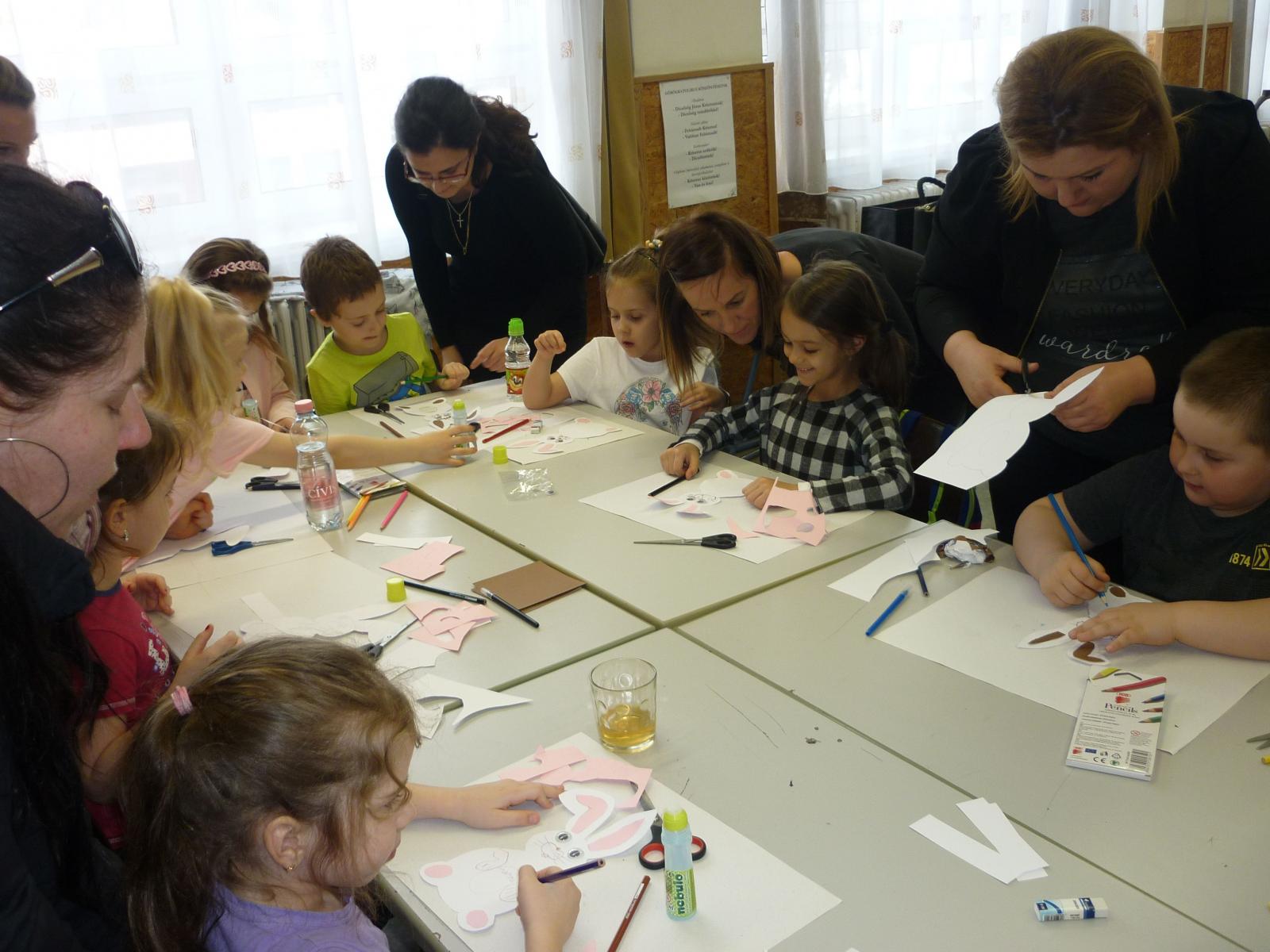 Színes, játékos feladatok segítségével ismerkedhettek a gyerekek az iskolai élettel, a leendő tanító nénik irányítása mellett. A délután a közelgő húsvét jegyében telt: kézműves foglalkozások, játékos feladatok várták leendő elsőseinket. Ismerkedhettek a számítógéppel, interaktív táblával az informatika teremben, de mozgásos feladatokkal is színesítettük a programot. Különleges volt a kicsik számára a hangterápiás foglalkozás, ami új eleme iskolanyitogató délutánunknak.
