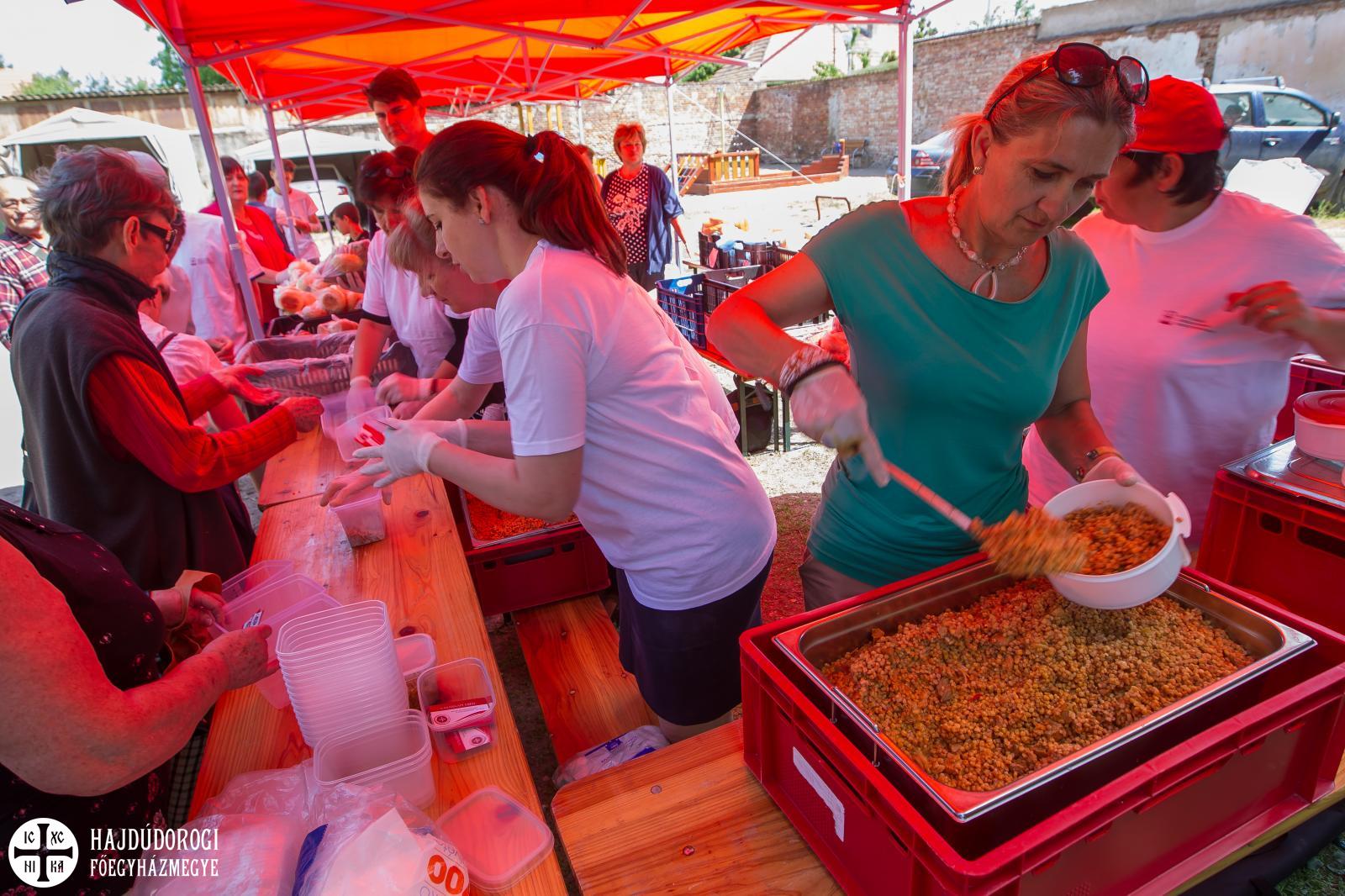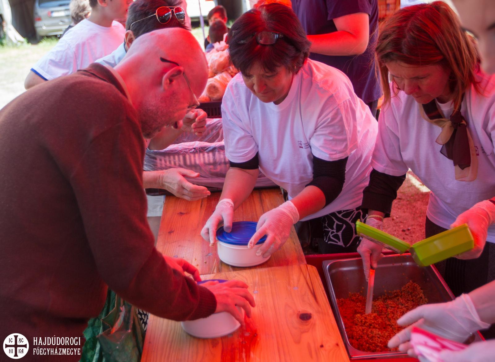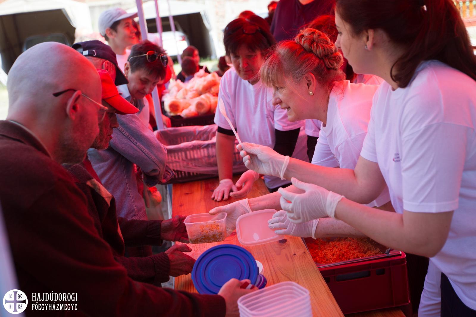 A Szent Lukács Görögkatolikus Szeretetszolgálat Karitatív Irodája ismét ételosztást tartott, ennek köszönhetően 340 rászoruló ember lakhatott jól e napon. A rászorulók tarhonyás húst kaptak ebédre, az Élelmiszermentő Hálózat jóvoltából pedig péksütemény és kenyér is járt az étel mellé.