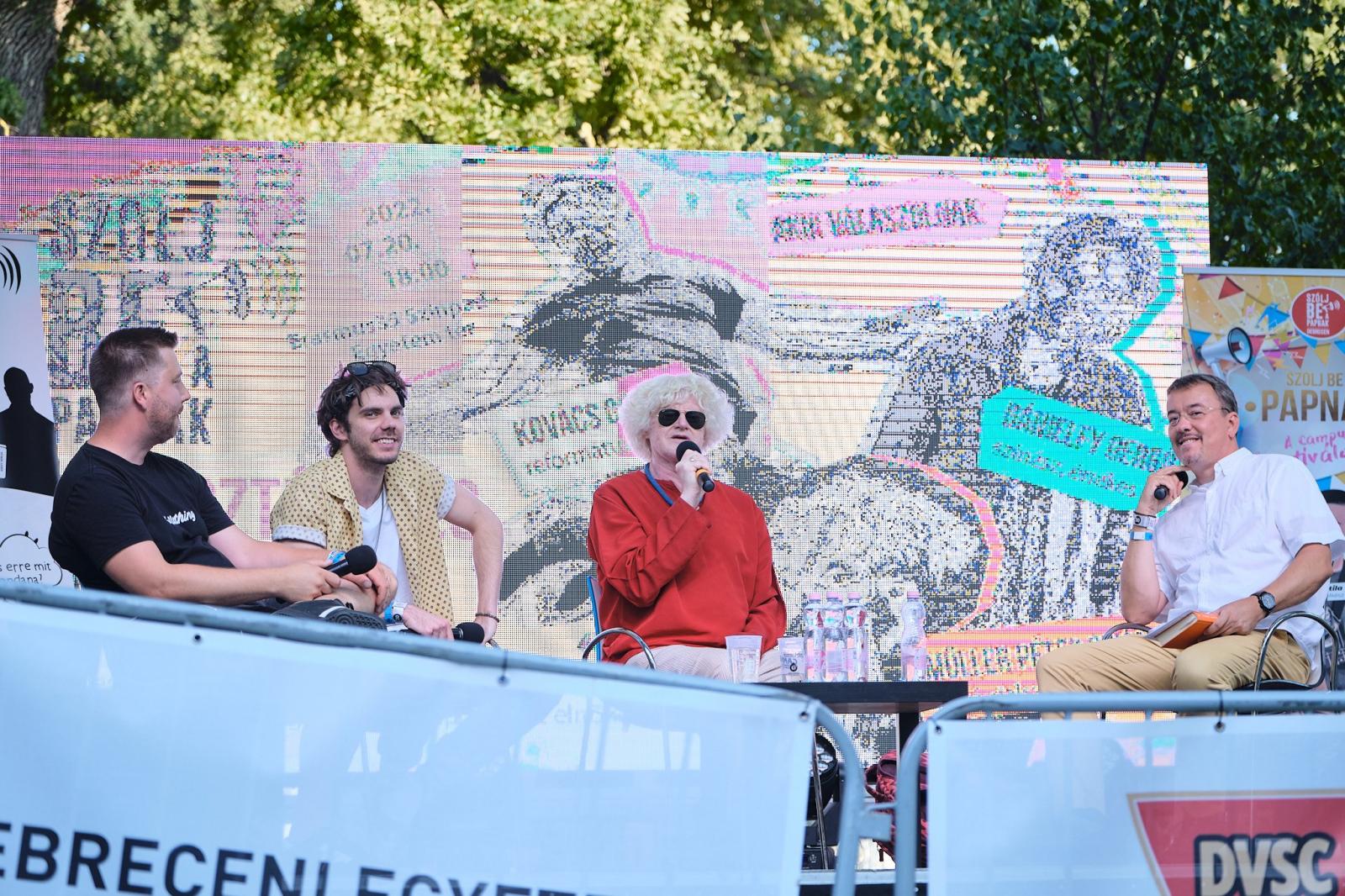 Aztán konkrét kérdéseken keresztül kezdték el boncolgatni, hogy ki és mi a trendi. Ketten amellett tették le a voksukat, hogy Ferenc pápa az, mivel próbálja előregörgetni a dolgokat, míg költőnk felhívta a figyelmet, hogy mennyire viszonylagos a megállapítás, hisz valakinek a pápa kicsit modernista.