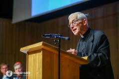 Michael August Blume SVD apostoli nuncius köszöntőbeszédét követően Kurt Koch bíboros, a Keresztény Egység Előmozdítása Pápai Tanácsának elnöke Hogyan viszonyul a világhoz a keresztény hit? – Megfontolások az ökumené szemszögéből címmel tartott előadást.