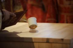 Az oltár fölkenésének és felöltöztetésének szertartásán a főpásztorok elsőként a vizet, illetve a bor és rózsavíz keverékét áldották meg, végül megszentelt olajjal kenték meg az oltárt. A ceremónia a templom falainak megáldásával ért véget.
