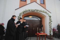 Hosszú időn át adott otthont a görögkatolikus híveknek a Szent Család római katolikus templom, a hála jeléül innen indultak el a püspökök a papsággal s vitték át az ereklyét az új görögkatolikus templomhoz. A hagyományoknak megfelelően senki nem léphetett be az új templomba, annak ugyanis üresen kellett fogadnia a főpásztort, az asszisztenciát, majd a híveket.