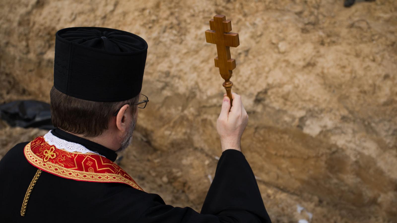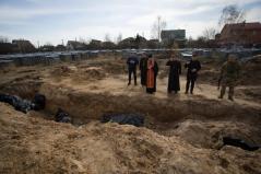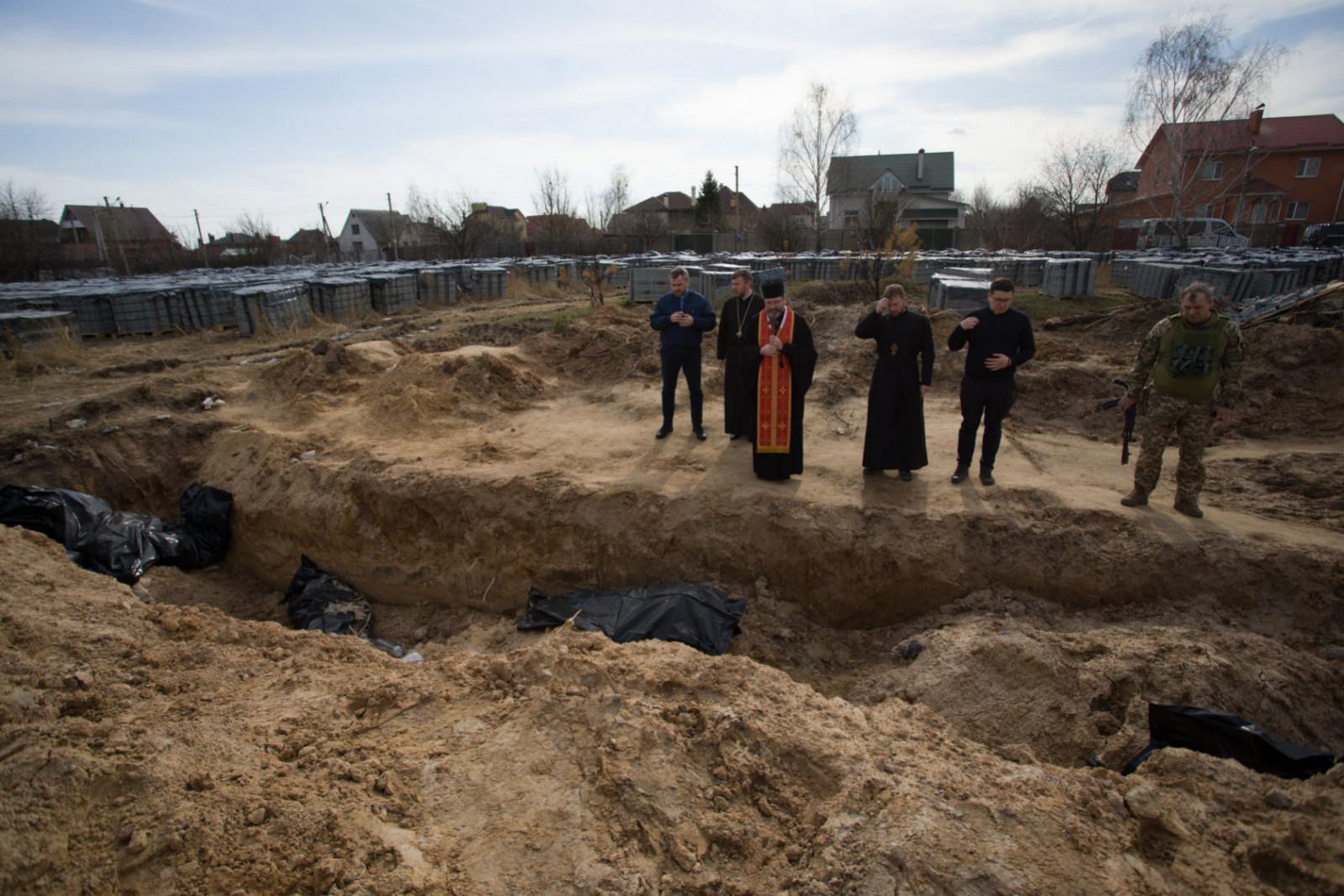 „Bármelyikünk itt lehetne ebben a tömegsírban – mondta. – Az Úristen adjon nyugodalmat ártatlanul meggyilkolt szolgái lelkének, mentse meg az emberi életeket, óvja meg Ukrajnát a gonosztevőktől, akik gyilkolni, fosztogatni és rombolni jöttek ide. A meggyilkolt ártatlanok emléke örökké velünk marad.”