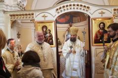 Másnap, mindezen események megkoronázásaként érsek atya vezetésével utrenyét imádkoztunk 08.30-tól, majd 10.00-kor kezdődött a püspöki Szent Liturgia. A szertartás végeztével mindannyian átmentünk a parókiára, egész pontosan a kápláni lakásba, az ilyenkor esedékes közös kávézásra. Most azonban nem csak egy kis beszélgetésre került sor, hanem érsek atya fel is szentelte a mostanra elkészült lakóhelyet.