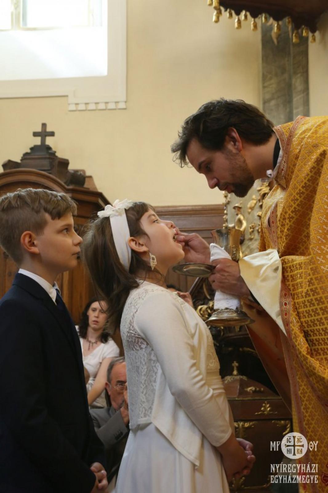 Kilenc elsőáldozó gyermek lehet ezentúl minden nap részese annak a titoknak, melyet Krisztus bízott ránk az Eucharisztiában. Budapesten, a Fő utcai görögkatolikus templomban hosszas készülődés, tanulás és sikeres vizsga után a gyermekek először gyóntak és áldoztak – elköteleződve a görögkatolikus egyház mellett – Kocsis Tamás atya vezetésével.