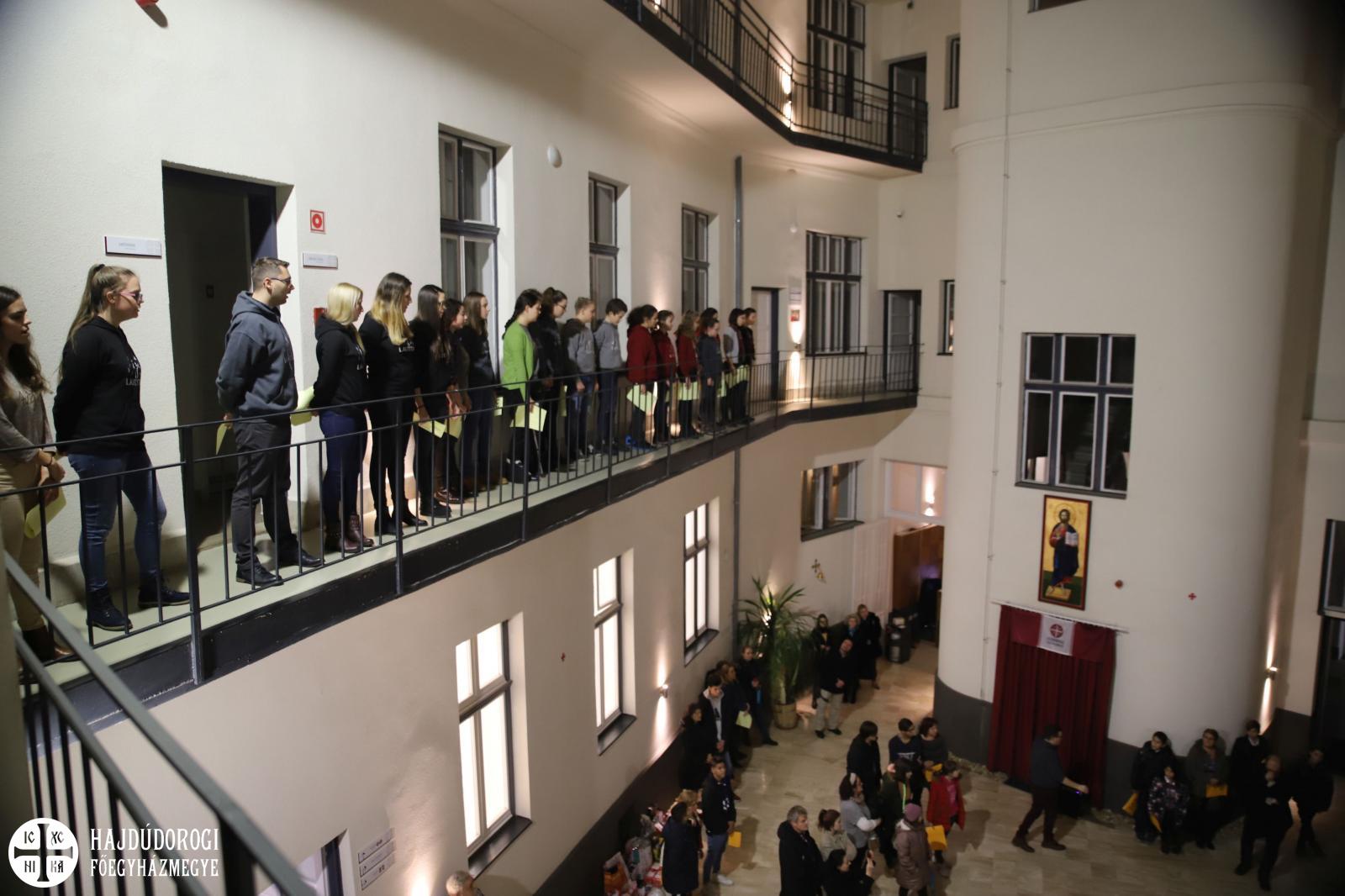 Az otthon lakói egy jelképes ajándékkal és műsorral köszönték meg a kórustagoknak, hogy befogadták kívánságaikat, majd jött a várva-várt ajándékozás. A csomagokra egy szám volt ragasztva, és a lakásotthonos gyerekeknél is volt egy – így lehetett tudni melyik meglepetés kié.