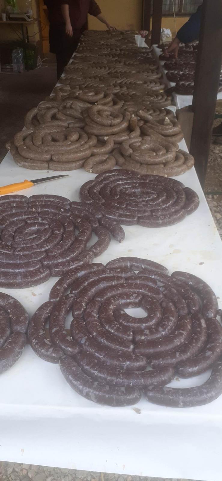 Az esemény hajnali hat órakor közös imádsággal indult, majd kezdetét vették az egésznapos munka előkészületei. Szalka Tamás vezetésével a böllér szakma fogásait ismerhettük meg, amit nem csupán a gyerekek, de a felnőttek is nagy odafigyeléssel hallgattak. A feldolgozott disznóból finom toroskáposzta, tepertő, kolbász, májas- és véreshurka készült. Az adománynak szánt, gazdagon elkészített csomagokba a meleg disznótoros ételek mellé banán, édesség és tea is került. A nap végén eljuttattuk ezeket a családoknak, csomagjainkat nagy szeretettel és köszönettel fogadták.