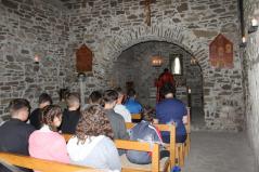 A Tihanyi-félszigeten lévő középkori Apáti templomban végezhettünk görögkatolikus Szent liturgiát, amelyben Főtisztelendő Elek Antal szombathelyi görögkatolikus áldozópap homíliájában a Lukács evangéliumában szereplő „egy apa két fiáról szólt”. Az egyik fiú nemet mondott az apa kérésére, de végül mégis megtette annak kérését. Ez alatt a tíz nap alatt mi, fiatalok is gyakorolhattuk a lelki programokban, hogy mire kér bennünket a Mennyei Atya majd az életben. Továbbá folytattuk utunkat a Tihanyi Apátság felé, ahol megtekinthettük a frissen megnyílt kiállítást. Élményekben és tapasztalatokban gazdag tárlatot láthattunk a szombathelyi Sarlós Boldogasszony Székesegyházban és a hozzá tartozó püspöki palota kiállítótermeiben.