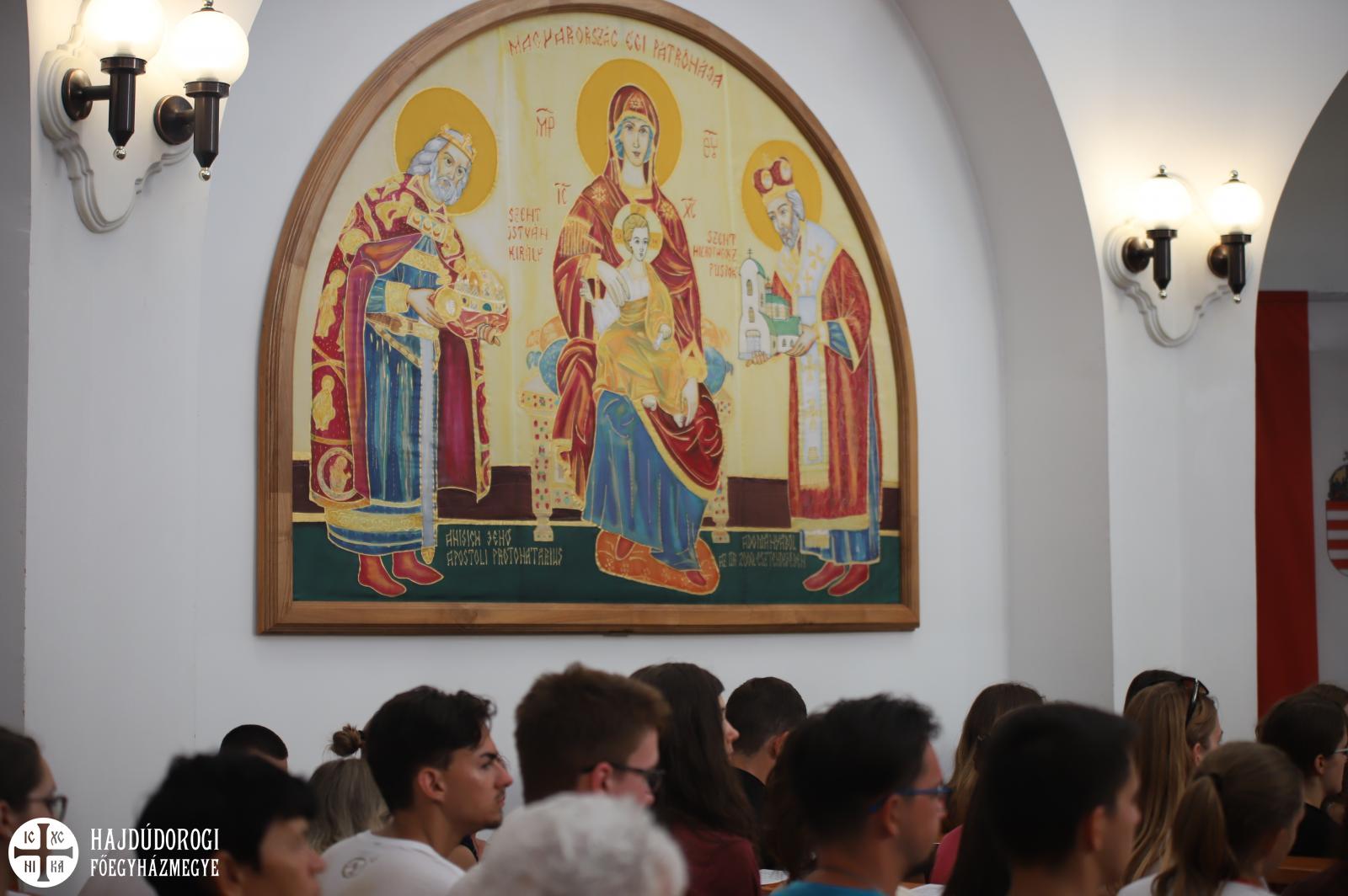 A szertartás végén a fiatalokat Kapin István parókus atya is köszöntötte, aki a Máriapócsi Kegyhely egykori igazgatójaként hosszú éveken át fogadta a zarándokokat, most pedig útjukra indította őket. Mint mondta a fáradtságban felszabaduló Istenélményt látta éveken keresztül az arcokon s egészen biztos abban, hogy ezt most is mindenki meg fogja tapasztalni. Szerinte a nagy csoda nemcsak az, hogy a fiatalok hisznek abban, hogy a Jóisten vezeti őket útjukon, hanem, hogy a Jóisten is hisz bennük. „Ez adjon erőt nektek, hogy a ti zarándoklatotok nemcsak nektek, hanem a mi közös hitünkben élő emberekért is fog szólni” – ezekkel a szavakkal kívánt áldott zarándoklatot parókus atya.