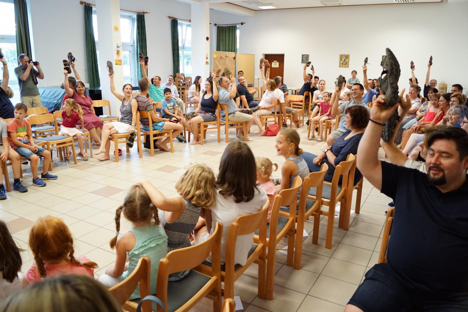 A záróesten művészeti és humoros produkciók mellett tombolára is sor került, és a latin tánc alapjaival is megismerkedhettek az érdeklődők az egyik tősgyökeres táborlakó család gyermeke révén, aki ma már hivatásos táncoktató.