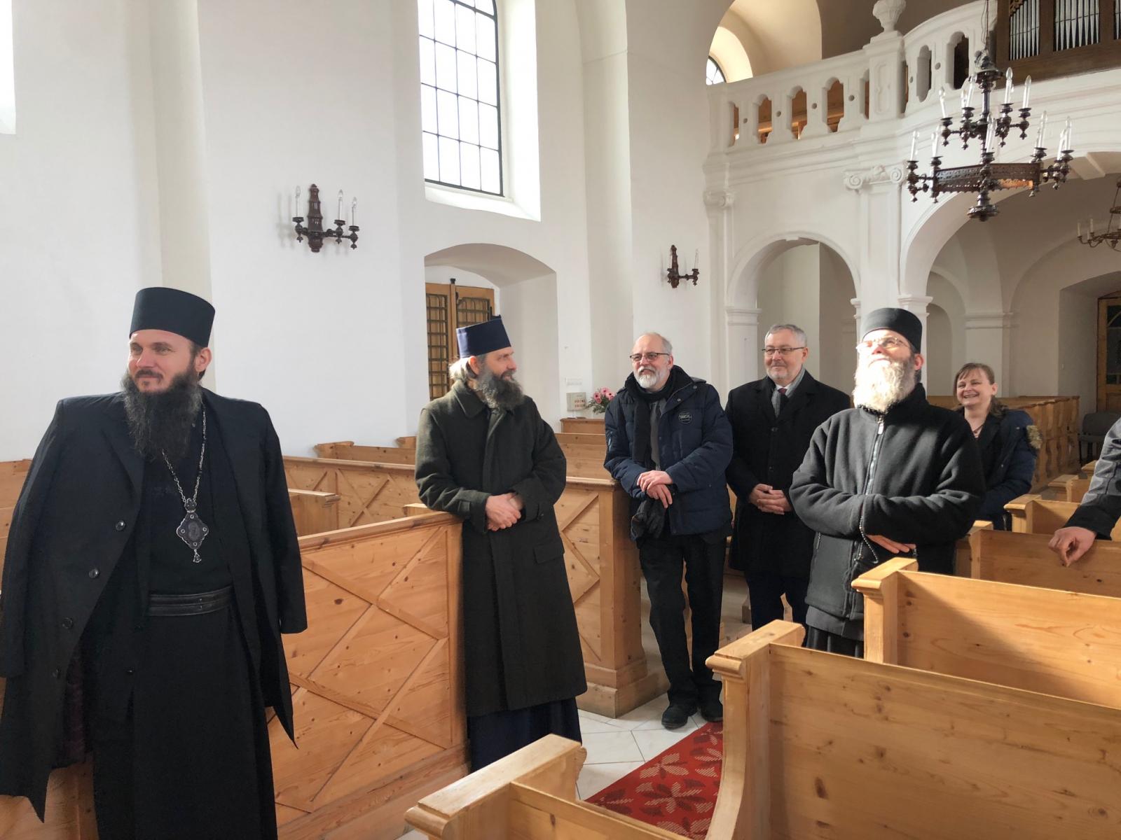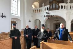 A gyülekezet templomának és az intézménynek a megtekintése után a találkozó a Luther Márton által szerkesztett litániával indult, amely az evangélikus Gyülekezeti Liturgikus Könyvben is megtalálható. Egyebek között ezt az imádságos könyvet kapták ajándékba a görögkatolikus püspök atyák.