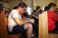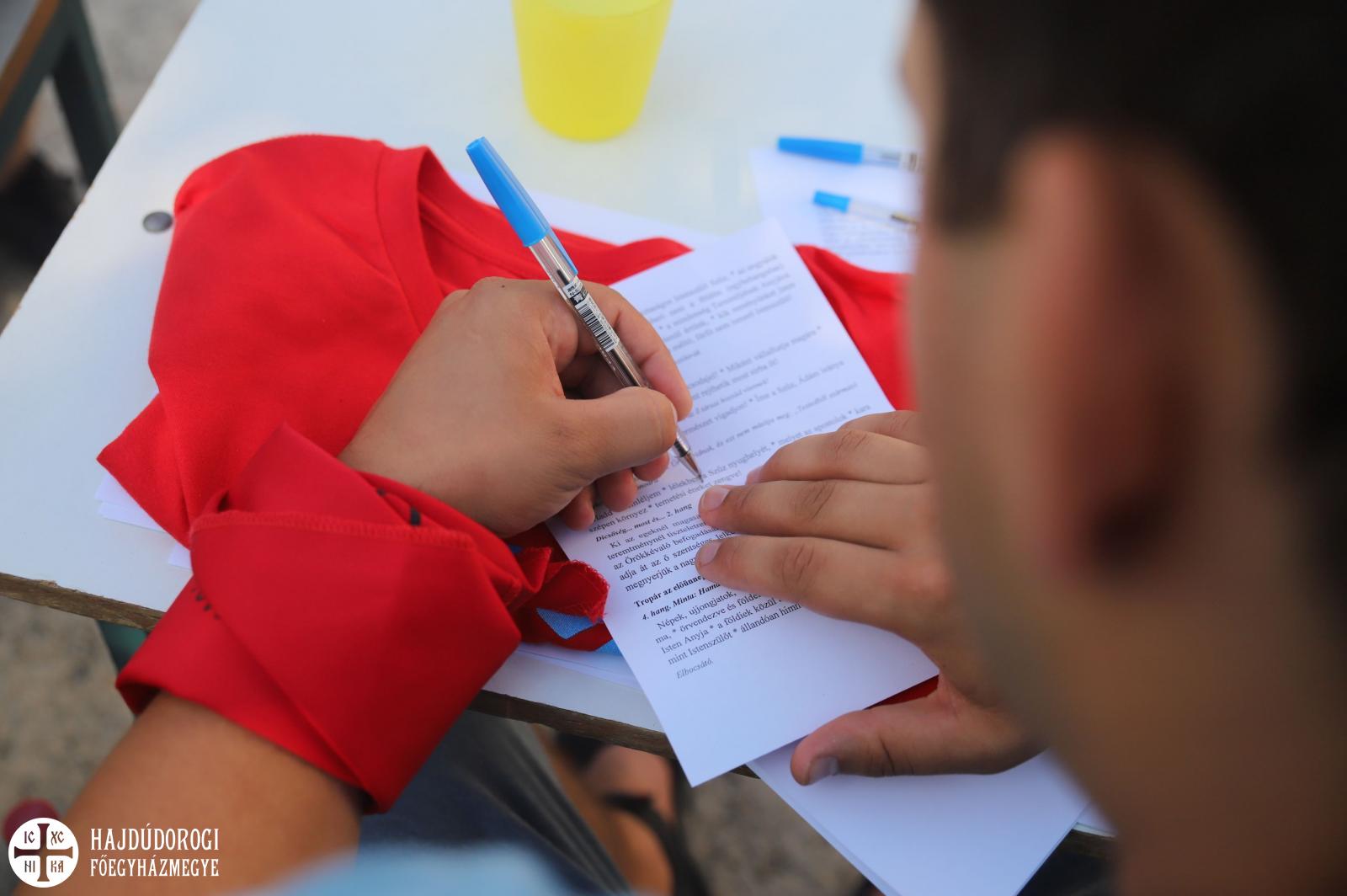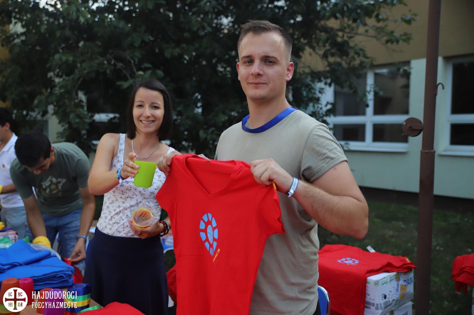 A regisztráció során a részt vevőket a jól bevált színek szerint (sárga, piros, zöld, kék) csapatokba osztották a szervezők, akik idén is különféle ajándékokkal kedveskedtek. Ilyen a póló, amiben visszaköszön a zarándoklat idei vizuális tematikája: a szuperhősökről szóló filmek. Ezek a mozik hatalmas népszerűségnek örvendenek, ám érdemes elgondolkodni azon, hogy ki hogyan lett különleges adottságokkal rendelkező személyiség.