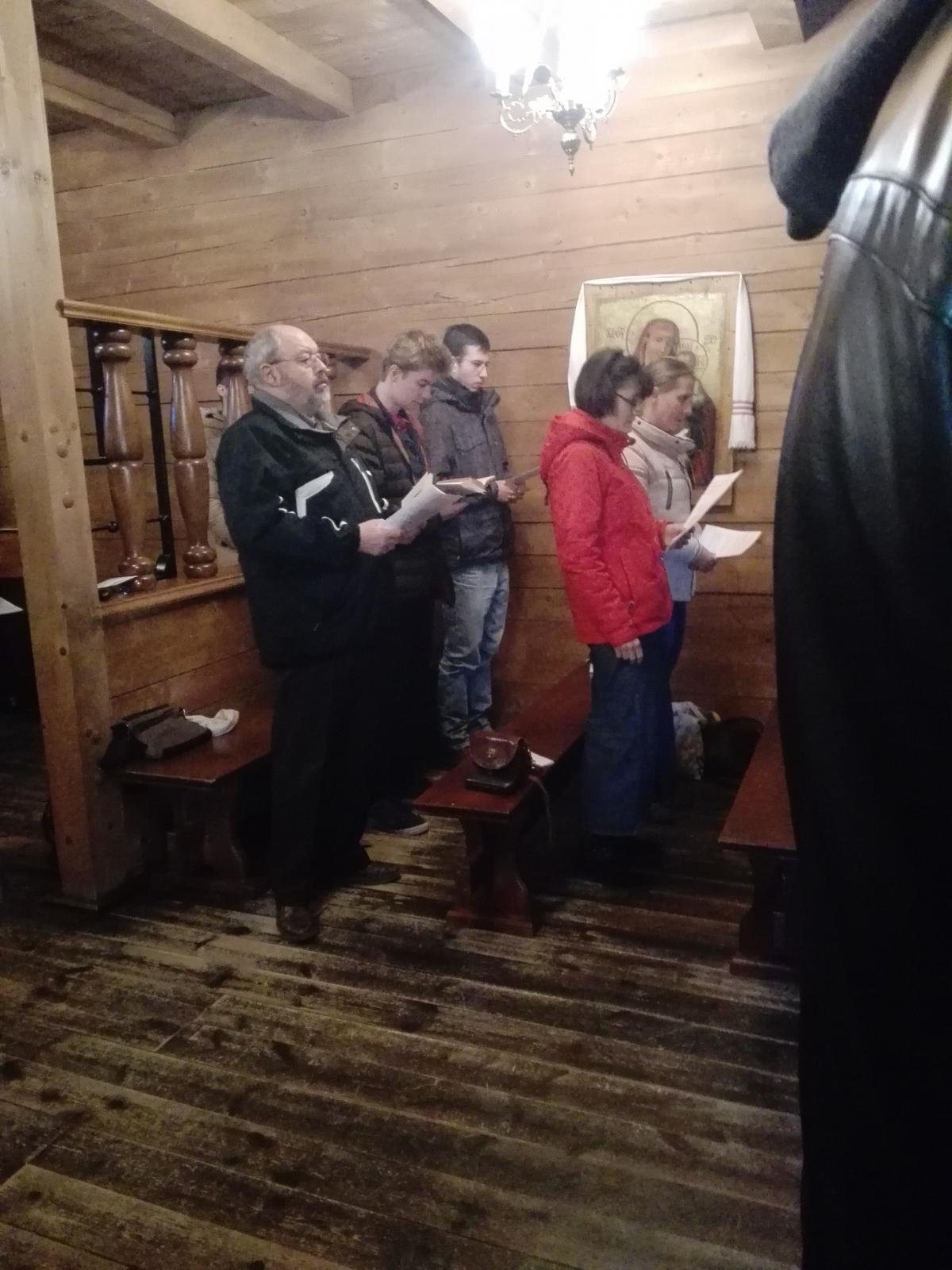 Pénteken az esti vecsernyébe tudtunk bekapcsolódni, és a vacsora után már az énekek gyakorlásába kezdtünk, a szombati utrenyét és a vecsernyét énekeltük át, de még előtte a lelkigyakorlatos fiatalokkal Akathisztoszt énekeltünk a kegykép előtt.