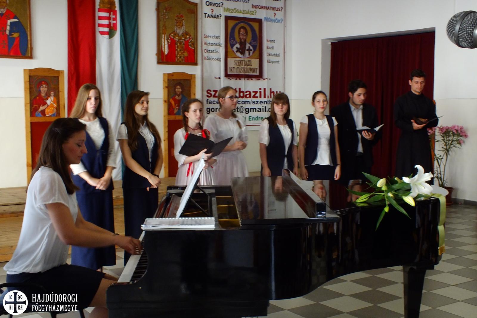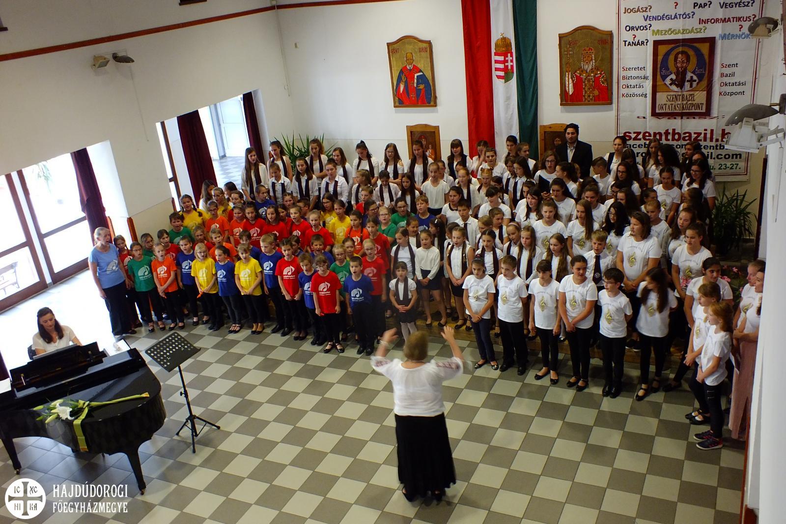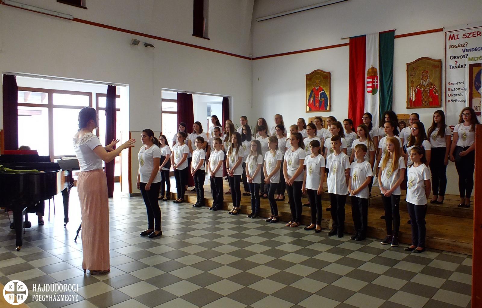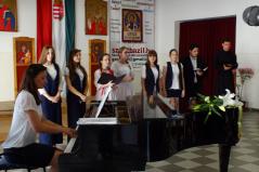 A hangverseny végén a fellépő kórusok két népdalt énekeltek közösen, ekkor több mint 150 görögkatolikus fiatal állt a színpadon, ezáltal is szimbolizálva az összetartozást, majd minden fellépő elfogyaszthatta iskolánk ebédlőjében a jutalom somlói galuskát.