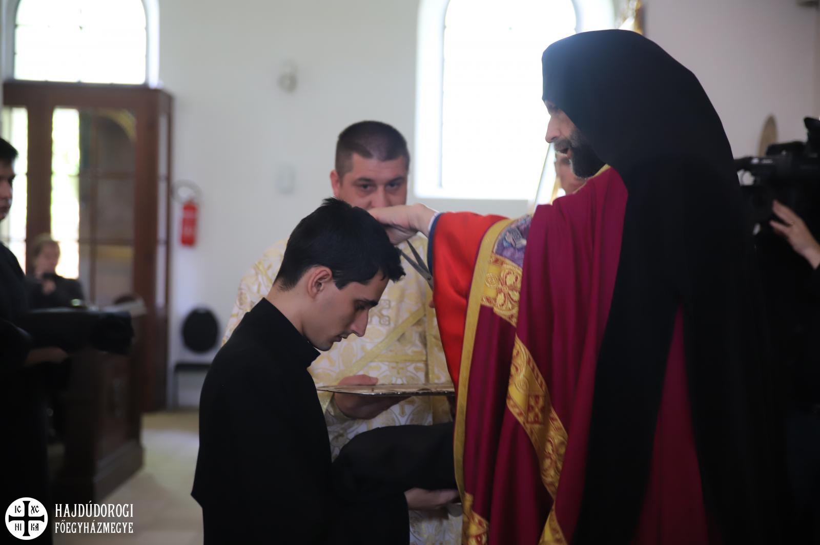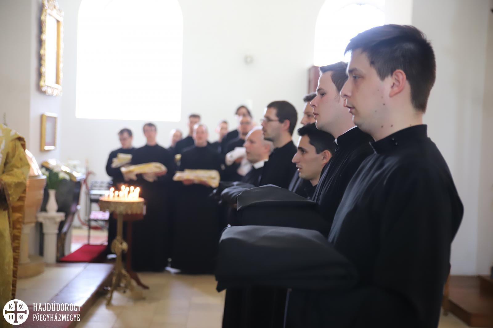 A fiatalemberekhez Orosz Atanáz püspök atya szólt néhány szót. Felidézte, hogy korábban nagyszerdán és nagypénteken kapták meg a kisebb rendeket azok, akik később diakónussá, majd pappá szentelődtek. Szolgálatra, ezzel kapcsolatos alázatra és mindenekelőtt Krisztus Urunk példájára figyelmeztetett ez a szokás. „Isten nem csak megajándékoz, megtisztel bizonyos személyeket ezzel, hanem ellátja egyházunkat, hogy működhessen, mert Isten igéjének felolvasása és meghirdetése nélkül nem működhet tovább Anyaszentegyházunk és az oltárszolgálat nélkül sem volna hiteles.”