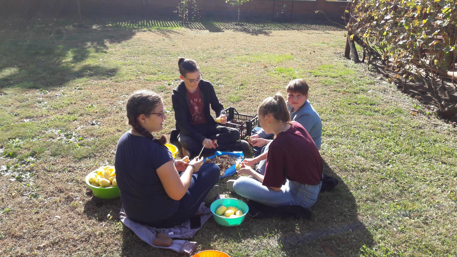 A nagyobbak már a bográcsozás előkészítésén fáradoztak, így a fárasztó, de nagy odaadást mutató takarítás után már jól megéhezve fogyasztottuk el a mustot és a paprikás krumplit. A nap három gyümölcsfa ültetésével vált teljessé, amellyel parókiánk is csatlakozott a Metropólia teremtésvédelmi akciójához.