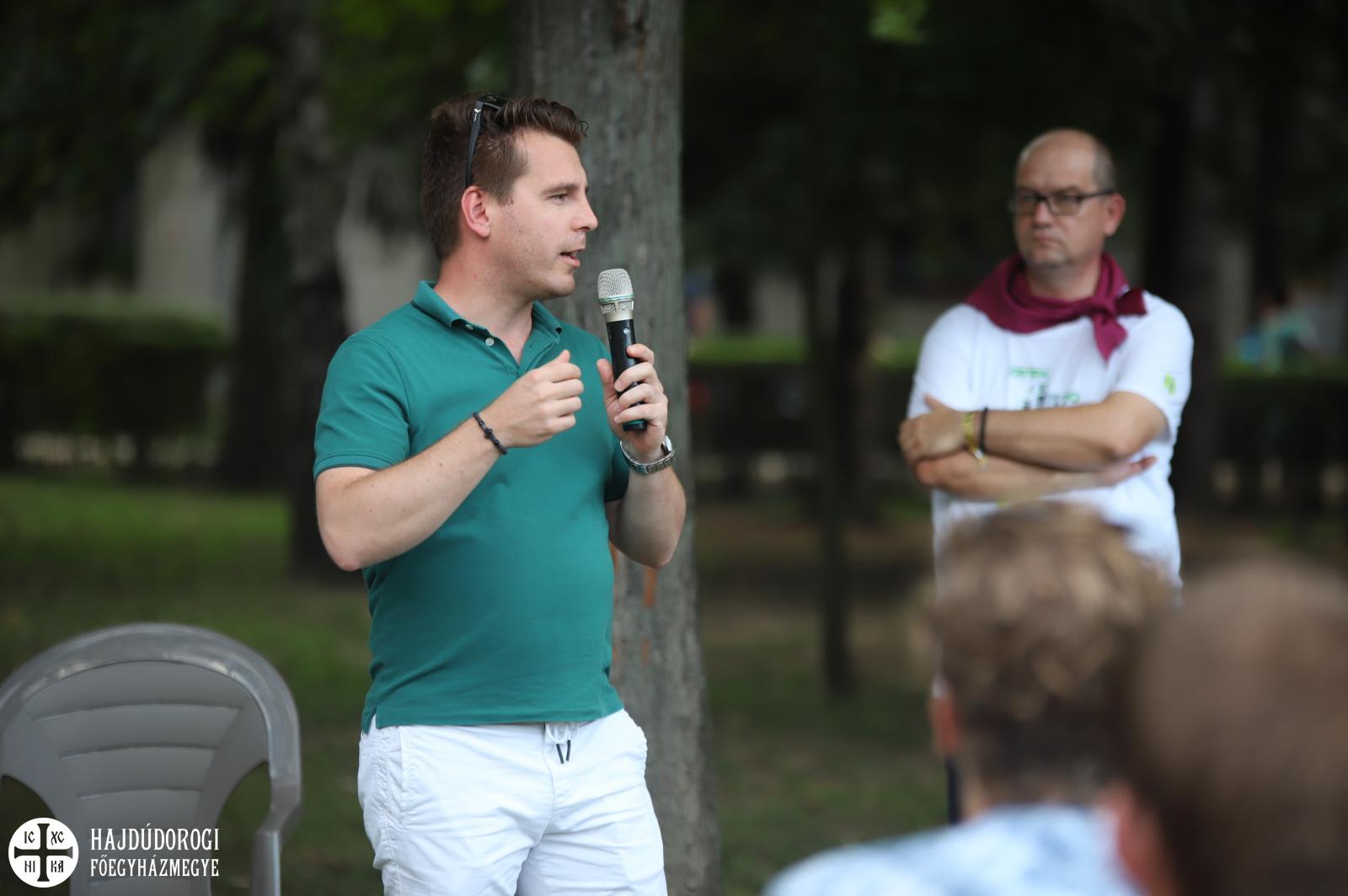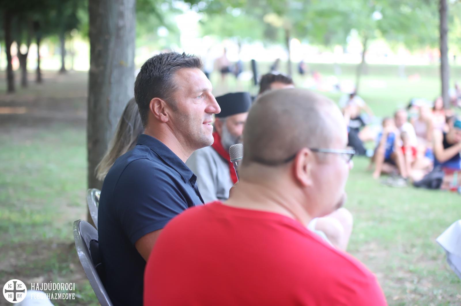 „Senkit nem akarunk megtéríteni, noha mindenkinek felkínáljuk, hogy nekünk ez a hitünk, ezt szeretnénk átadni, ám ez a folyamat nem lehet »izzadságszagú«. De talán az sem baj, ha valaki nem nevezi magát kereszténynek, ha ettől függetlenül is képes ezeknek az értékeknek a mentén élni az életét.” – tette hozzá diakónus atya és szaladt tovább szervezkedni, hiszen a hajdúdorogi strandra várták a hét egyik kiemelt vendégét Kiss Gergely háromszoros olimpiai bajnok vízilabdázót és feleségét Kissné Valkai Annát.