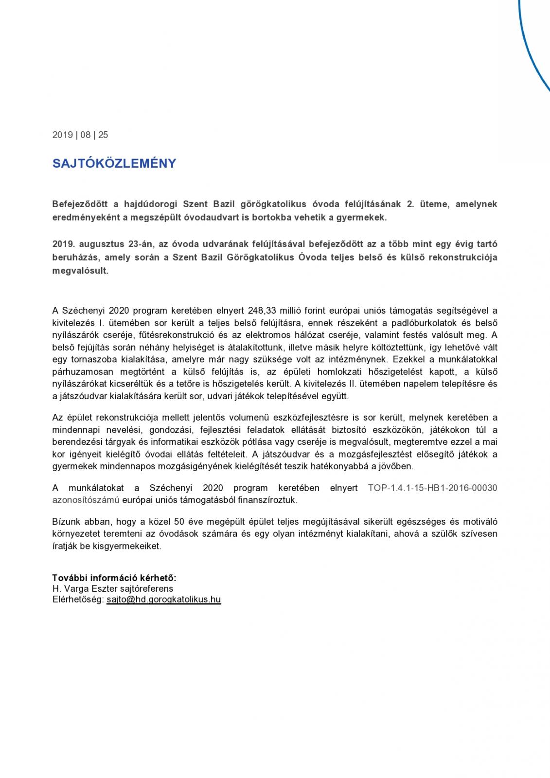 Befejeződött a hajdúdorogi Szent Bazil görögkatolikus óvoda felújításának 2. üteme, amelynek eredményeként a megszépült óvodaudvart is bortokba vehetik a gyermekek.