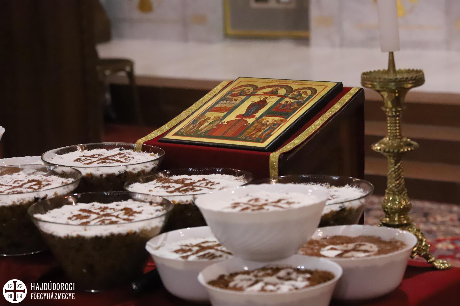 Nagy tálakban sorakoztak a mézes-gyümölcsös finomságok az asztalon; Nagyböjt második Előszenteltek Liturgiájának elmaradhatlan része ennek megáldása. A koliba elnevezés arra az édes süteményre is utal, amit a halotti torokon osztottak szét az egybegyűlteknek.