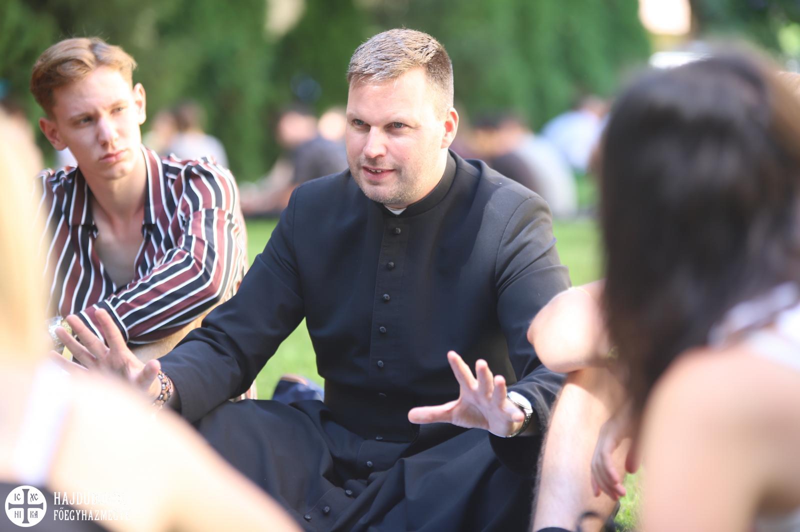 A lelki nap előadója ezekkel a tanításokkal engedte ki a templom kertjébe a fiatalokat, hogy kis csoportos beszélgetésekben gondolkozzanak el a hallottakon és beszéljék azokat át az atyákkal az alábbi kérdések mentén: