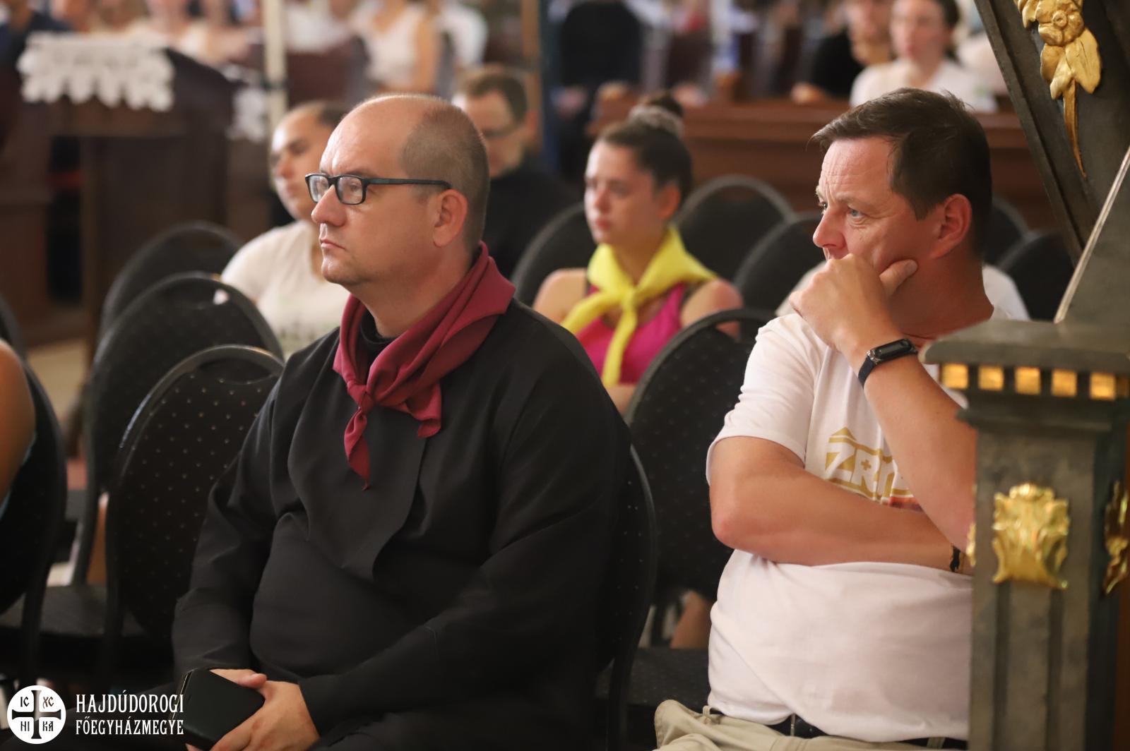 Majd szó esett a zarándoklat idei mottójáról (Kelj fel…és menj!), ami sokakat világított rá arra, hogy elengedhetetlen napi kapcsolatban lenni a Jóistennel, s nem elég heti egyszer „letudni” azt a templomban. Sőt, arról sem szabad megfeledkezni, hogy naponta adjunk hálát életünkért. Sokaknak éppen ezért hasznos a zarándoklat, mert ha letérnének erről az útról, akkor ennek az egy hétnek köszönhetően visszatalálnak a Jóistenhez.