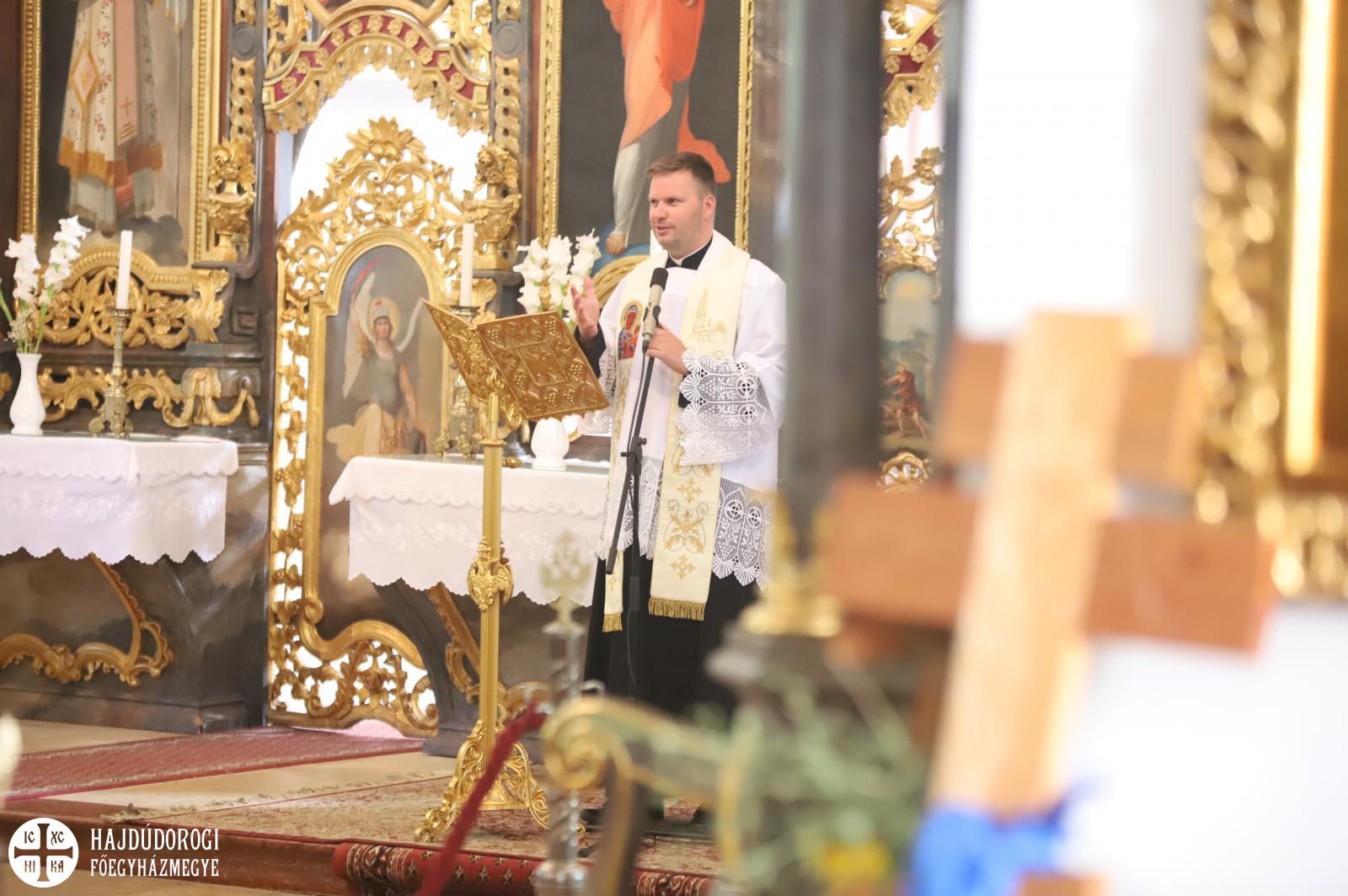 „Több mint másfél éve élünk a korona-vírus árnyékában. A világot térdre kényszerítette az a láthatatlan ellenség, ami emberi kéz alkotásaként szabadult el és vált kontrolálhatatlan pusztítóvá. Képtelenség megjósolni hol üti fel a fejét, milyen mutánsok alakulnak ki az elkövetkező években, melyek időről-időre tönkretesznek mindent, amit addig felépítettünk. A világ fiai rettegésben vannak, vásárlási lázba kezdenek, gyűjtik a mammont a következő hullám érkezéséig, panaszkodnak, keresik a bűnöst, hogy aztán magukra zárják az ajtót és folytassák fogyasztói, önpusztító életüket, amit addig is műveltek. Azt már végkép nem látják, hogy a baj az ő készülékükben van. Lehet, hogy 38 évet kell várnunk, arra, hogy felismerjük az egyedüli szabadulásunkat?” – tette fel a kérdést Gergő atya utalva ezzel a bénára, aki 38 évet várt arra, hogy Jézus meggyógyítsa a Betesda fürdőnél.