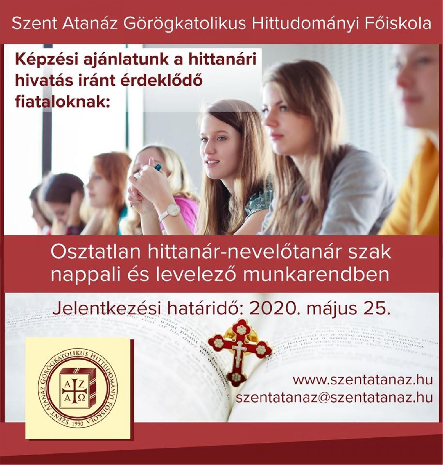 Osztatlan hittanár–nevelőtanár szak (4+1 év). Azokat a görög- illetve római katolikus jelentkezőket várjuk, akik hittanárok szeretnének lenni az Egyház szolgálatában. A szak egyszakos képzésben végezhető.