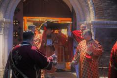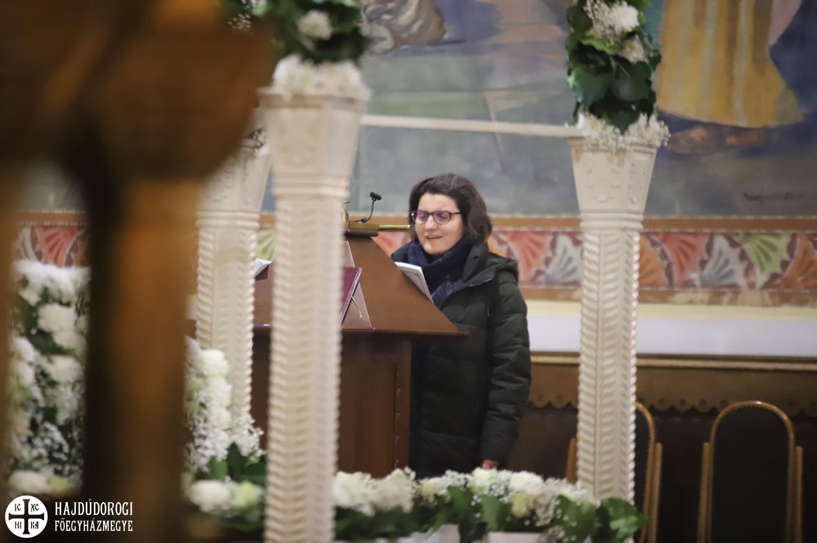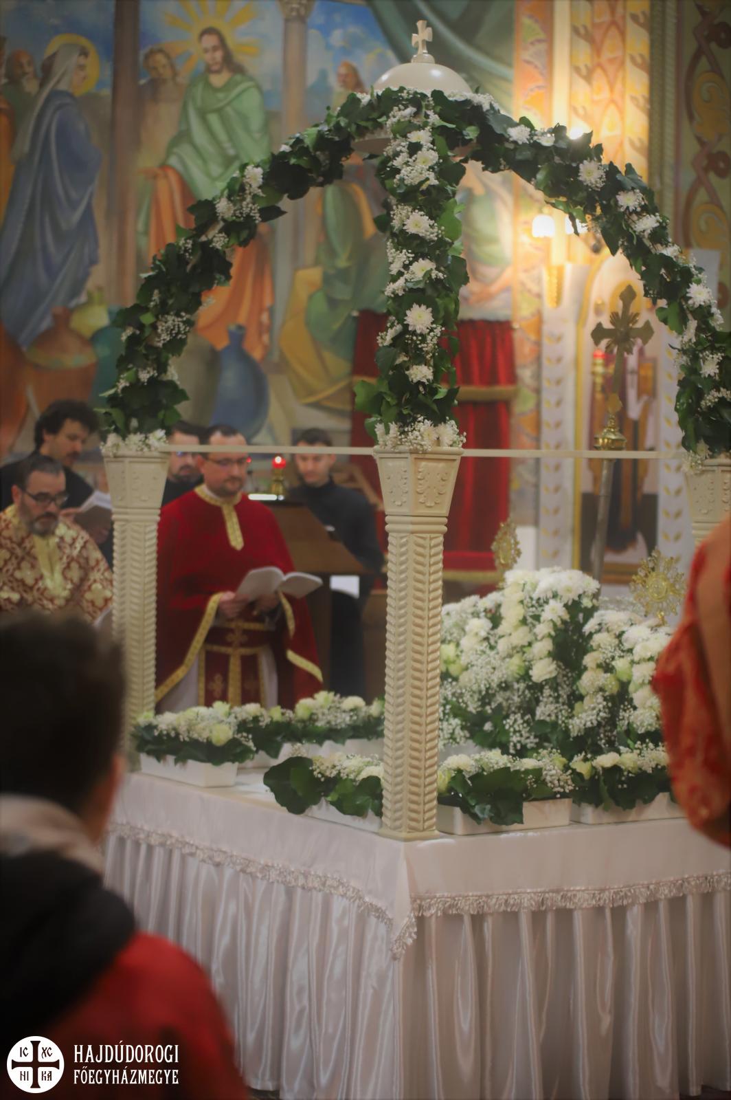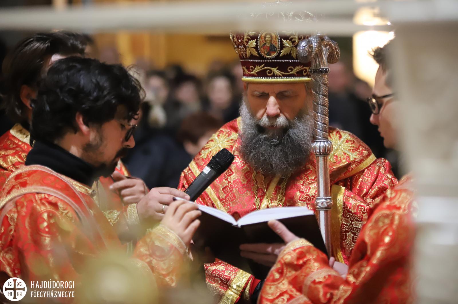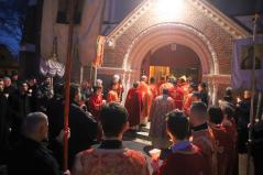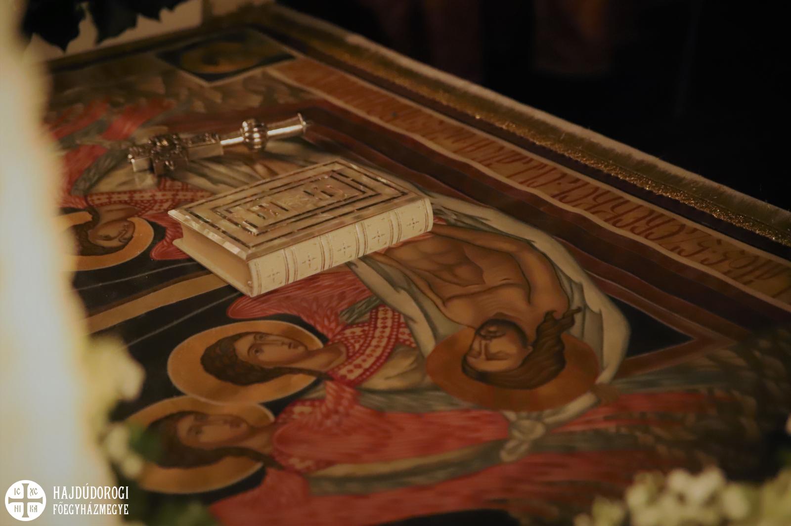 A vecsernye legszebb pillanatai voltak azok, amikor Fülöp érsek-metropolita atya háromszor megtömjénezte az oltárra terített, Krisztus testét ábrázoló sírlepelt, amit aztán a magasba emelve vittek körbe a főszékesegyház körül. A körmenet közben fennhangon énekelték a hívek a tropárt: "Az istenfélő József levevén a fáról a te legtisztább testedet, tiszta gyolcsba göngyölé és illatos szerekkel ellátva új sírba helyezé." Majd a sírlepel alatt fejet hajtva léphettek be ismét a templomba. A szertartás végén a virágokkal díszített szentsíron elhelyezték a liturgikus kendőt, amit csókkal illethettek a hívek is.