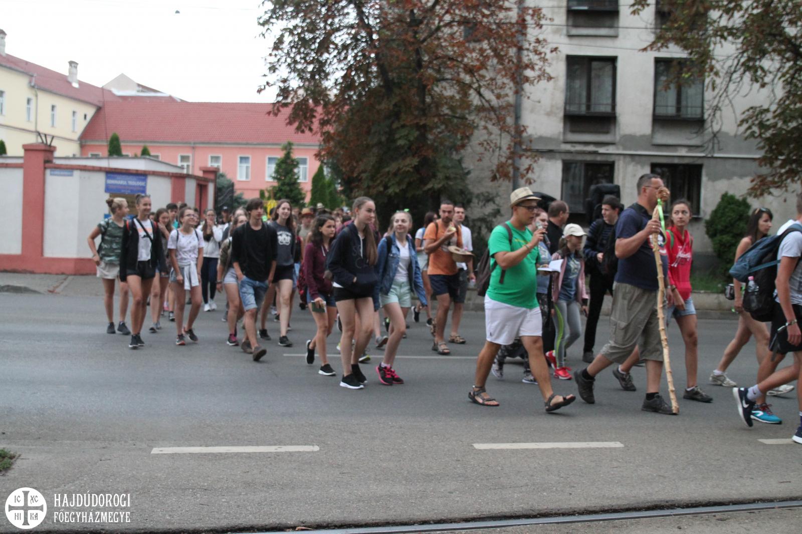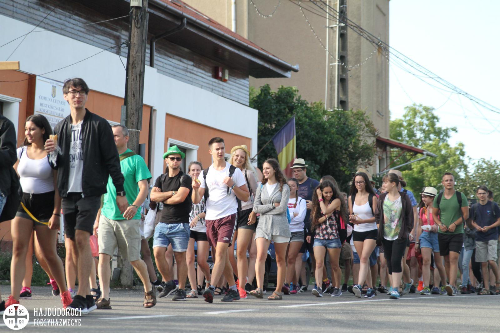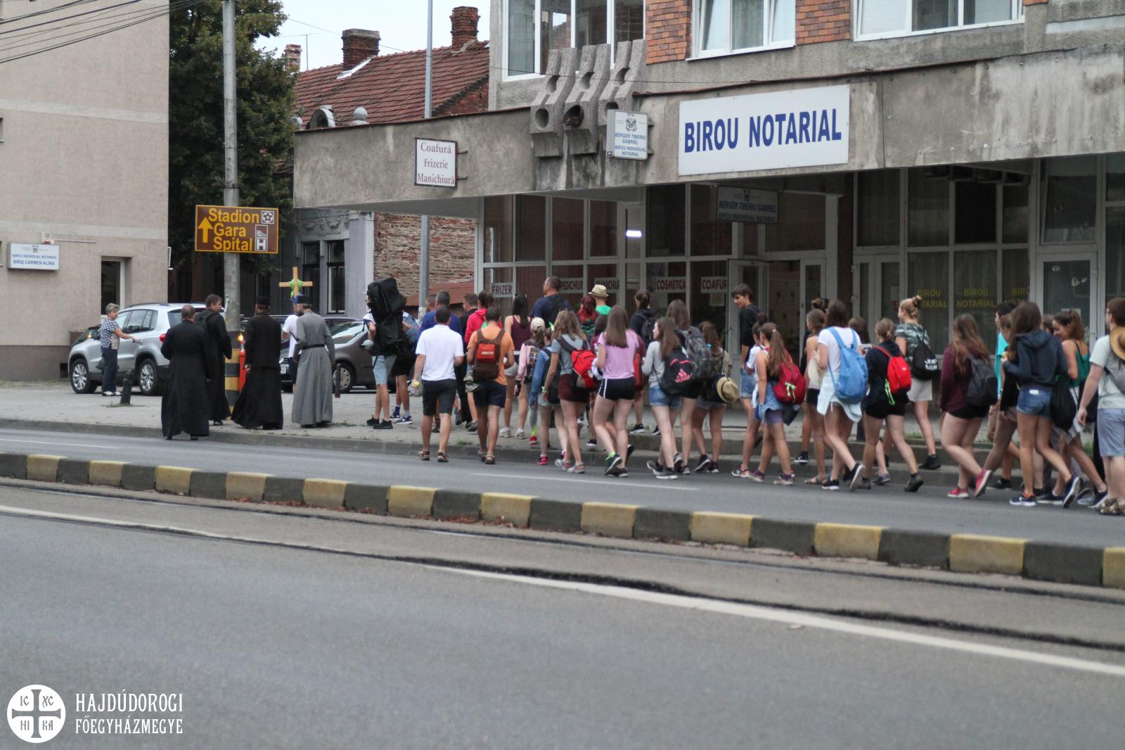 Igen csak korai ébredéssel kellett megbirkózniuk fiataljainknak a gyalogos zarándoklat második napján, augusztus 8-án. Nagyváradon érte őket a hajnal, a görögkatolikus szemináriumban töltötték ugyanis az éjjelt. Hálás köszönetet mondtak a zarándokok a szállásadóknak, dr. Seszták István atya pedig jelképesen zarándokká avatta őket azzal, hogy egy kis zarándok csomagot nyújtott át nekik. A hajnali búcsú után összeállt a csapat, csaknem 250 résztvevő vágott neki a Hegyköznek, élükön Kocsis Fülöp és Szocska Ábel atyával...