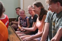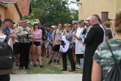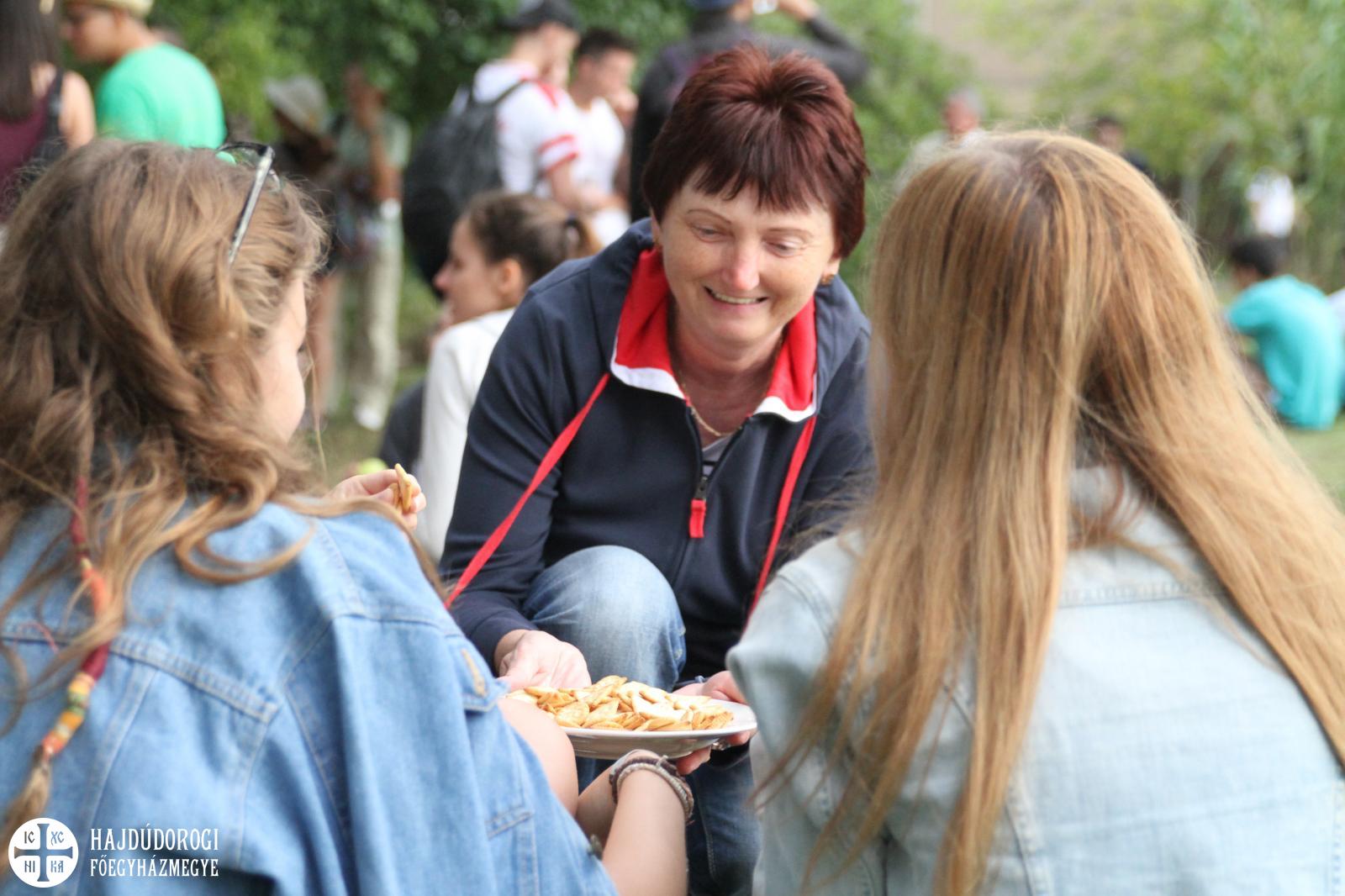 A szép gondolatok után valóban belekóstolhattunk a tótteleki vendégszeretetbe: bőséges ebédet kapott a nagy csapat. Köszönetet mondtunk vendéglátóinknak, és útnak indultunk Szentjobbra. Közben két pihenőt iktattak be: Sítér és Fegyvernek falvakban, ahol pogácsával és friss vízzel várták a gyaloglókat. Szentjobbra már igencsak kimerülten érkeztek meg.