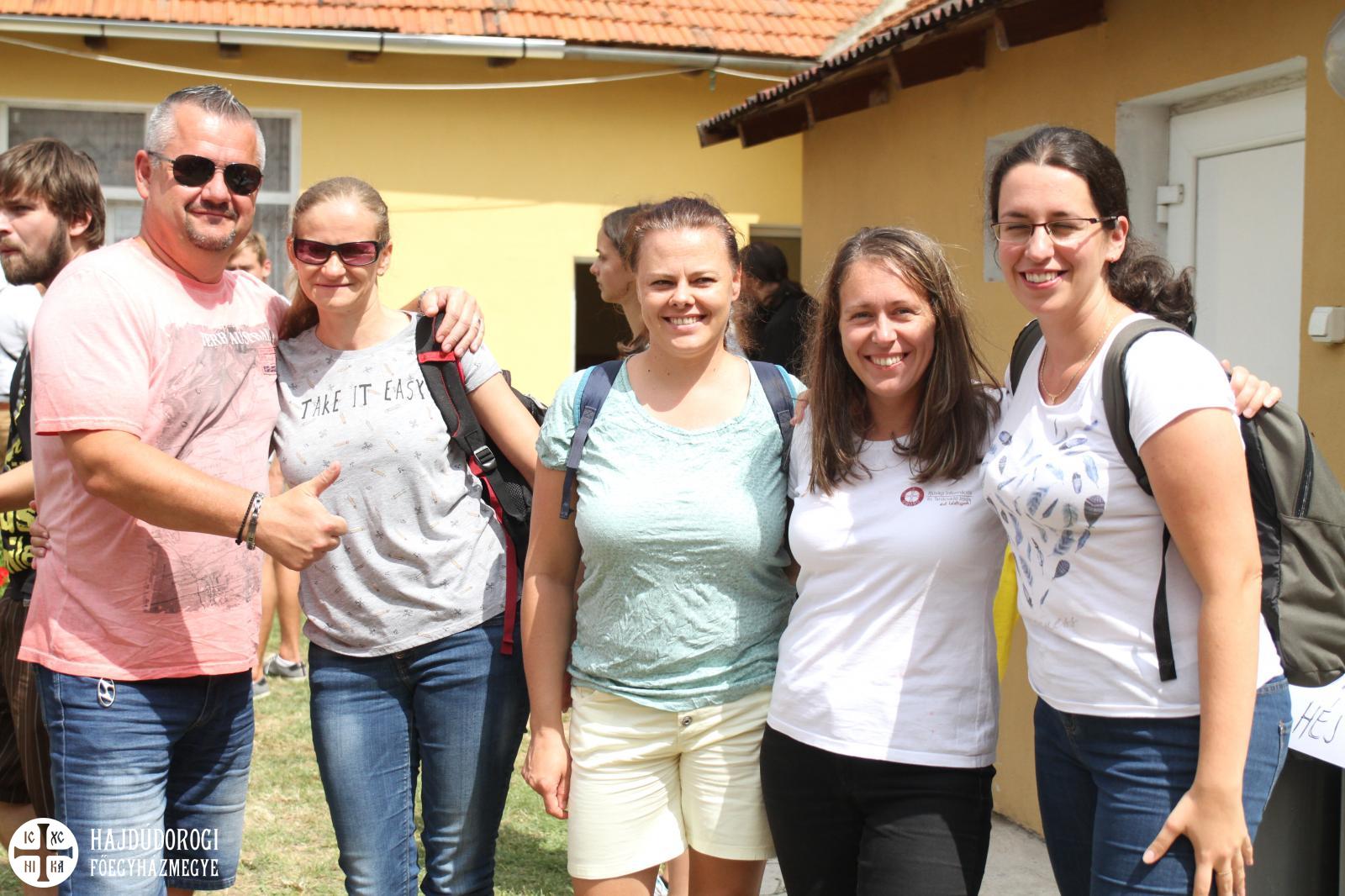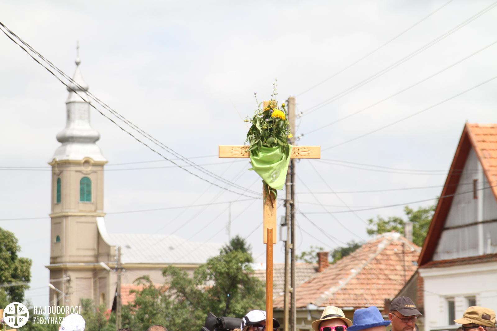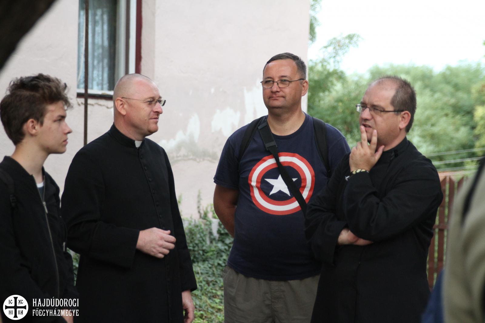 Az első állomás Hegyközcsatár volt, eddig (kivételesen) busszal mentek a résztvevők, hiszen a keddi táv jócskán meghaladta volna az erőforrásokat. Az ottani egyházközség lelkes tagjai finomságokkal várták a mieinket. A rövid feltöltődés után már valóban gyalogosan folytatták útjukat a zarándokok. A bihari térség csodás tájain szelték a kilométereket. Hegynek fel, hegynek le. Többen is megjegyezték: régen láttak ilyen szép tájat.