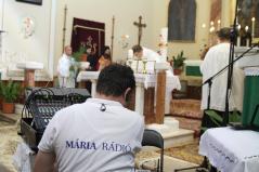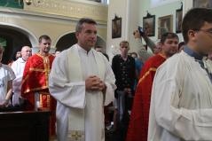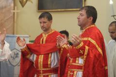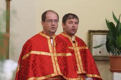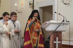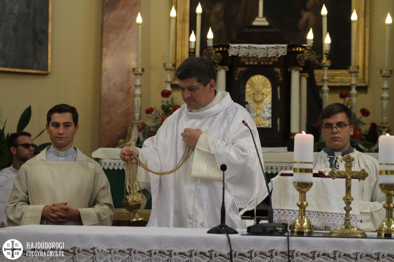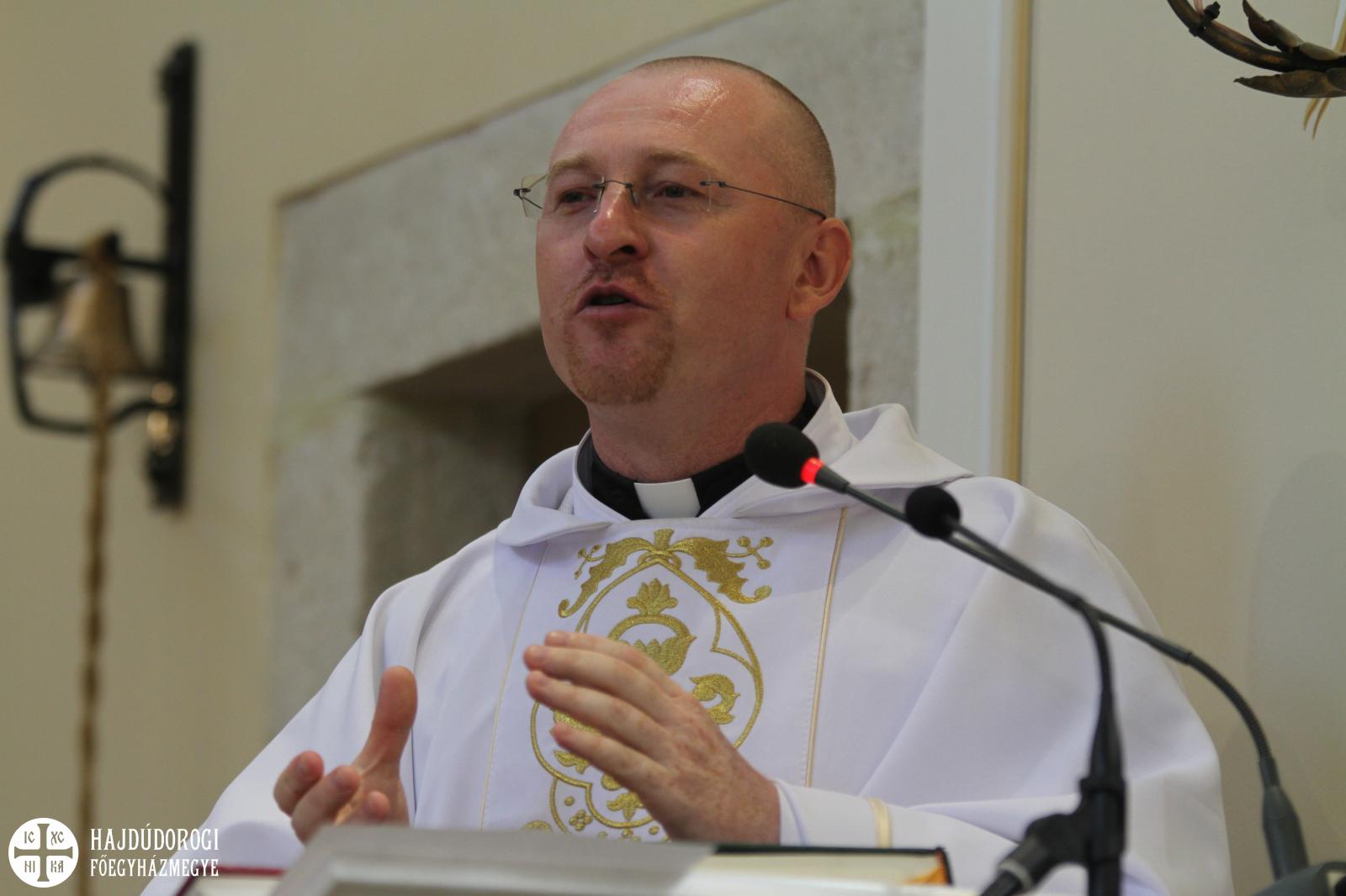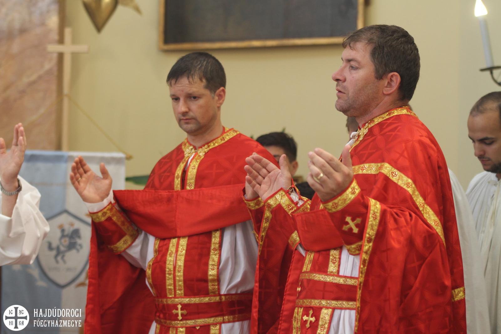 Hegyköztóttelken már nagyon várták őket. Az első útjuk a római katolikus templomba vezetett, ahol egy szent misén vettek részt, melybe bekapcsolódtak a görögkatolikus atyák is. Dr. Fügedi Antal, mezőbikácsi plébános tartotta a misét. Kocsis Fülöp metropolita prédikációjában Szent László erényeit hangsúlyozta. A mai napon az Igazságosság erényét emelte ki. „Jézus Krisztus saját magáról mondta: hogy Ő az Igazság. És minden emberi igazság csak ő belőle bontható ki. Szent László is Krisztus Igazságát közvetítette.” – mondta Fülöp atya. „Ez a zarándoklat igazából egy lelki gyakorlat. Gyakoroljuk be, hogyan tudunk Krisztusra tekinteni az életünkben. Amikor elgyengülünk, mondjuk magunkban mindig azt: én Krisztusra tekintek, mert Ő az egyetlen igazság. Tudnunk kell ugyanis, hogy Ő az egyetlen kapaszkodónk ebben a világban. És mire Máriapócsra érkezünk, megtanulunk vízen járni, mint Péter…és nem süllyedünk el, ha Krisztusra, az egyetlen Igazságra tekintünk közben!”
