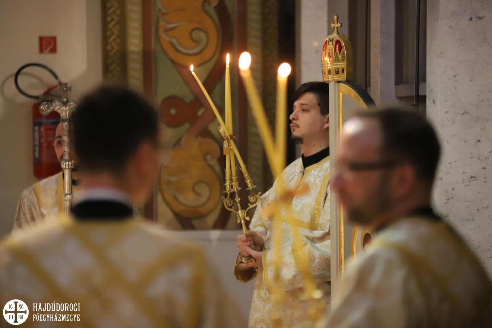 Régi hagyományaink szerint tizenkét nyelven olvassuk el, de most csupán három nyelven, görögül, franciául és a mi édes magyar nyelvünkön hangzott el ennek az új teremtésnek a meghirdetése. Tudja meg az egész világ, az új teremtésnek ez a híre járja be az egész világot! Hiszen az egész világot átalakítja az az esemény, amit Krisztus a mai napon hozott.