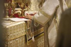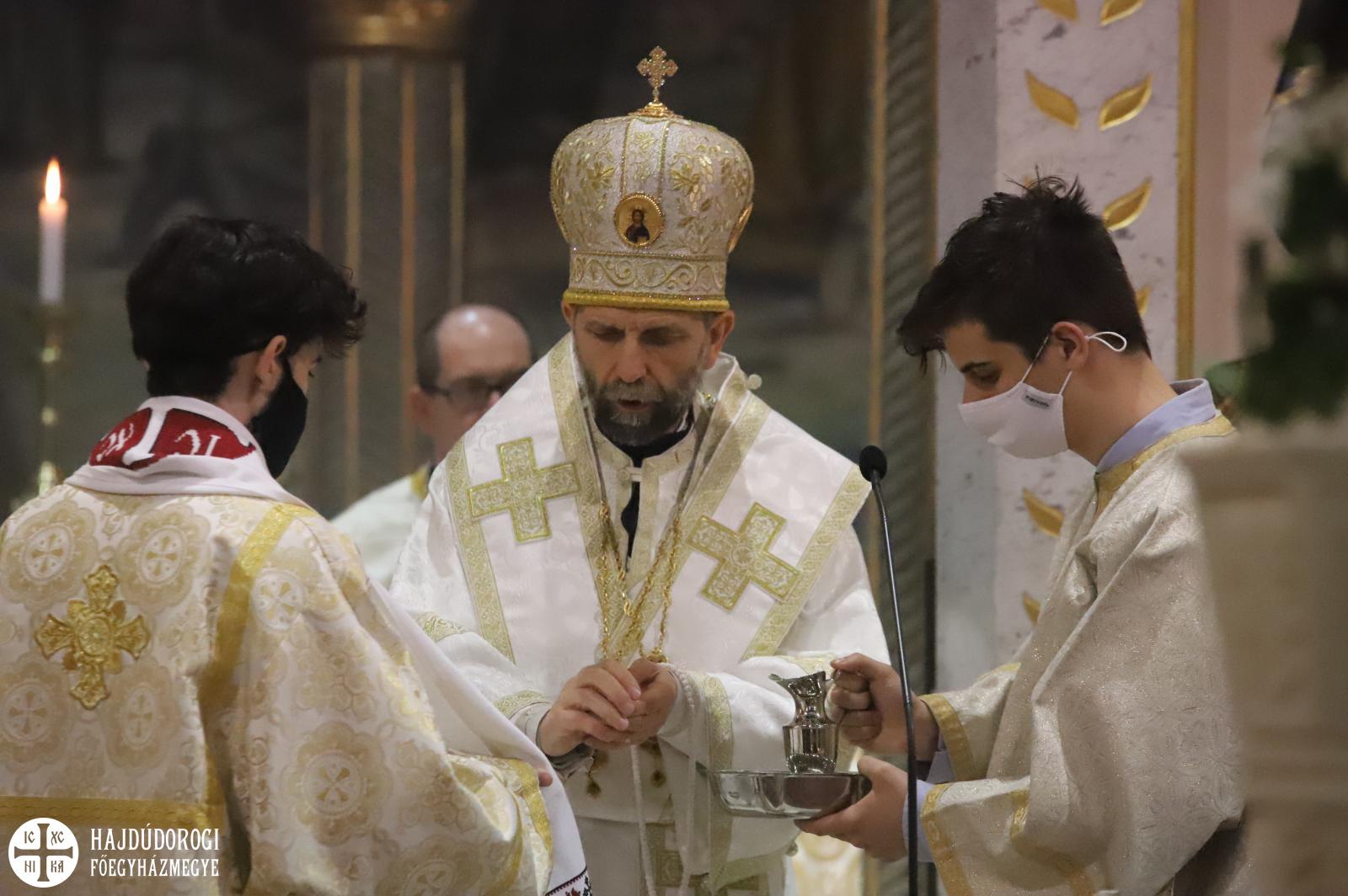 Isten szavával világosságot teremtett a káosz uralta föld fölött. Szólt és világosság lett. Ma azt hallottuk húsvét éjszakáján, hajnalban derengő napkeltében, hogy „kezdetben volt az Ige” (Jn 1,1). Az Ige ott játszadozott (Péld 8,31a), amikor Isten Lelke lebegett a vizek fölött. A Szentháromságos Isten megteremtette ezt a világot, s azzal kezdte, hogy világosságot alkotott, most, az új teremtés hajnalán pedig arról hallunk, hogy az Ige, amely „ott játszadozott és gyönyörködött az emberekben” (Péld 8,31b), testté lett. Az Ige megtestesülve lejött a Földre, arra a Földre, melyet a Szentháromságos Isten alkotott. Az Atyaisten Fia által a Szentlélekben.