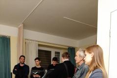 Sokszor éreztem azt, hogy vajon erre van e szükségük, nem zavarjuk-e őket. De hamar elillant ez a gondolat, amikor a mosolygó arcokat, erőtlenül, de éneklő ajkakat láttam. Nem beszélve arról, hogy amikor az osztályt éppen elhagyni készültünk az egyik szoba énekelve búcsúztatott minket. Krisztus születik!