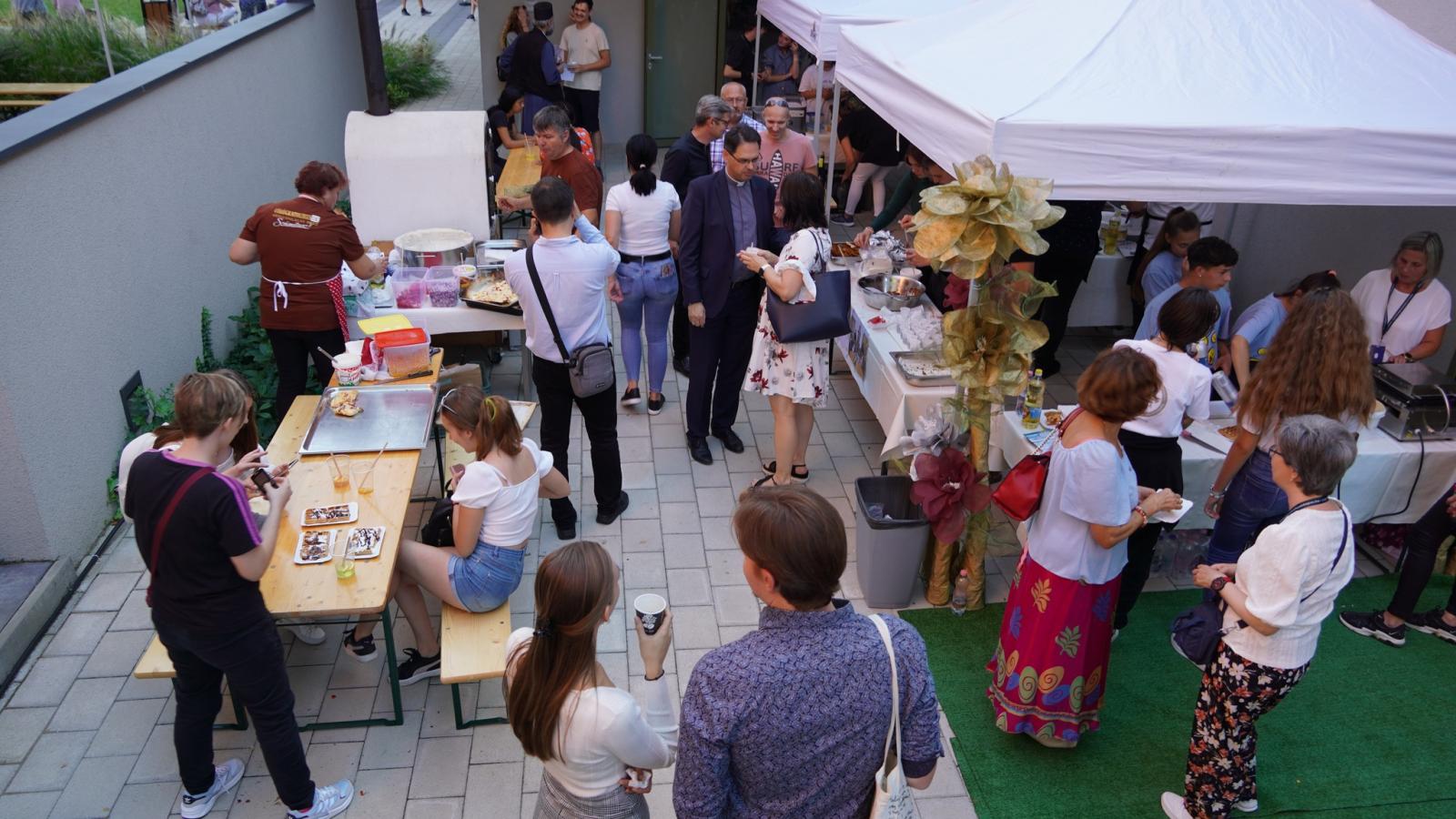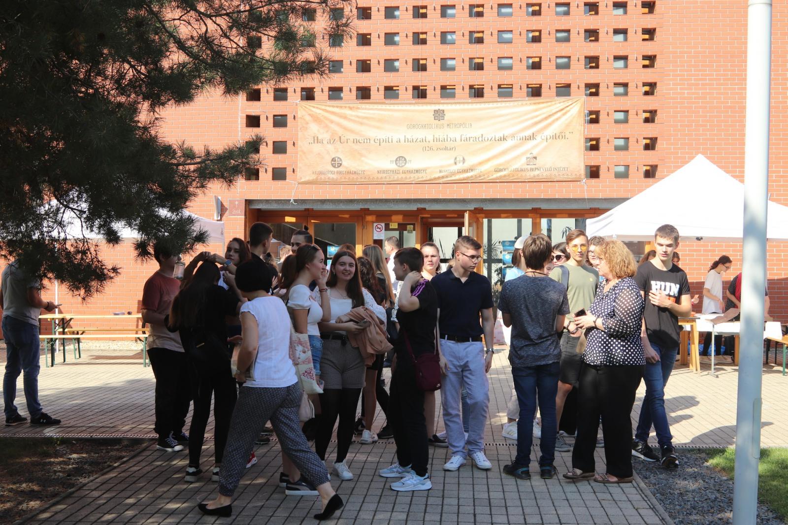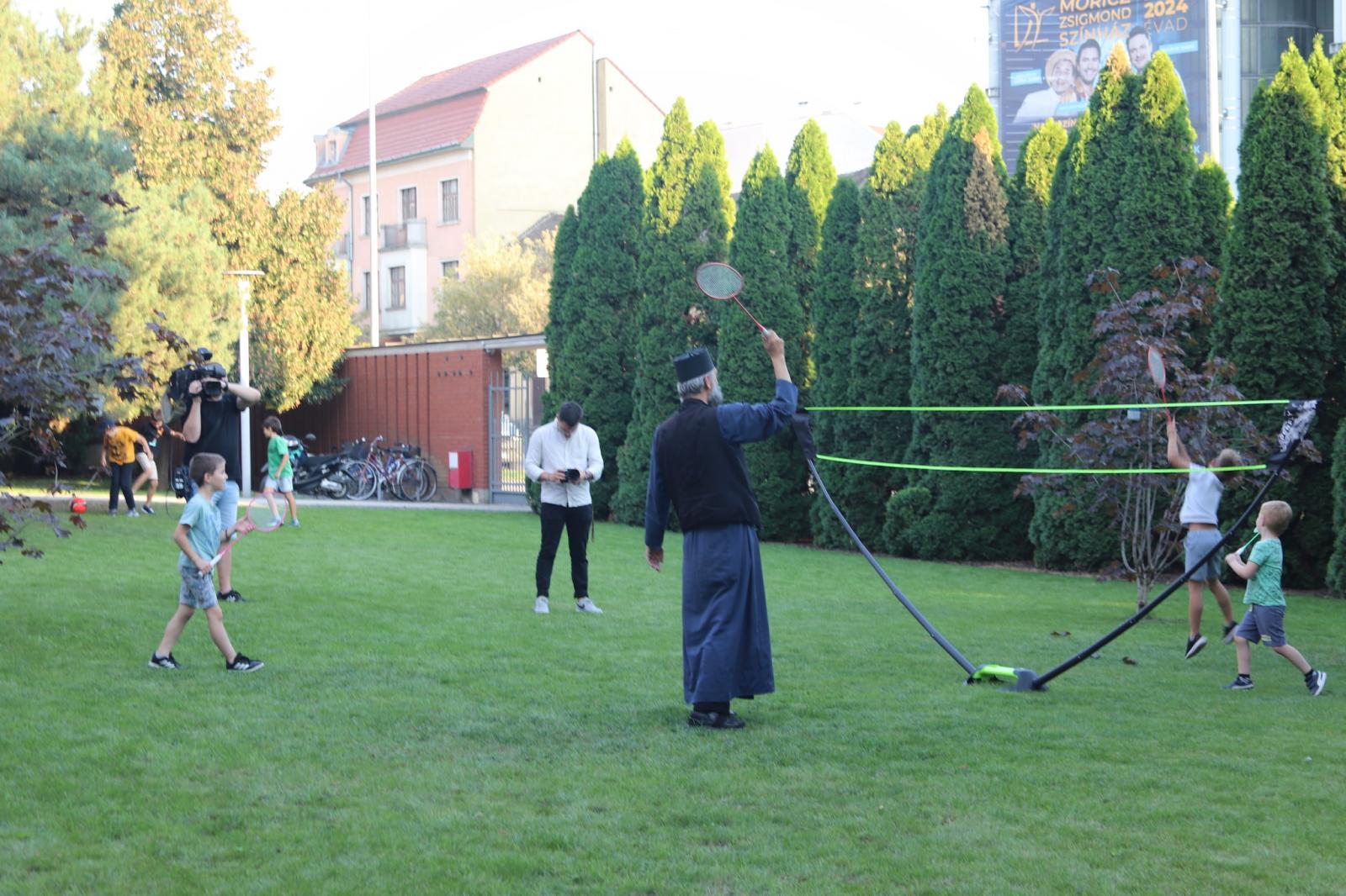 A fenti előadásokkal párhuzamosan a Görögbe fogadlak nyitott udvar rendezvényünkön egy őszi piknik keretében vendégül láttunk kicsiket és nagyokat, görögkatolikusokat és a hozzánk betérő minden kedves vendéget egyaránt. A délután folyamán a Gasztroudvaron intézményeink lelkes önkéntesei sütöttek-főztek és kínálgatták az embereket. Volt itt kemencében frissensült kenyérlángos, goffri, lapcsánka, papnövendékek által sütött palacsinta és a Szent Miklós Óvoda óvodásai által készített koliba is, a debreceni Myra kávéház pedig az italokról gondoskodott. A gyerekek tollasoztak, fociztak, a főiskola hallgatói lelkesen játszottak velük, arcfestést és csillámtetkó készítést is vállaltak a délután folyamán.