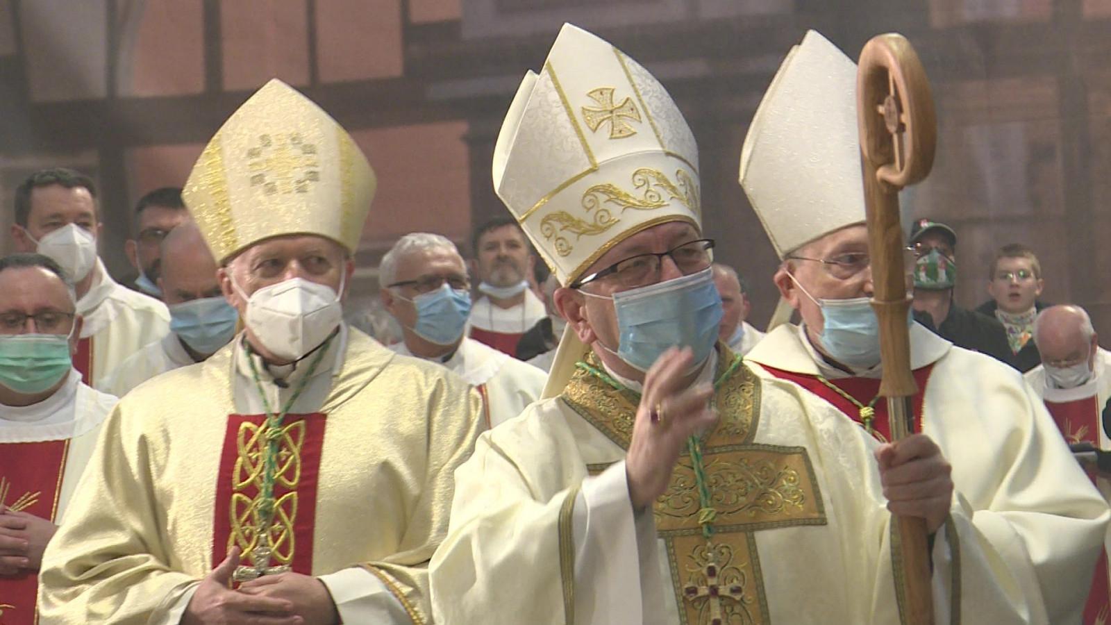 Végül átnyújtották neki az evangéliumoskönyvet, megkapta a gyűrűt, a mitrát és a pásztorbotot, majd elfoglalta helyét a püspöki székben.