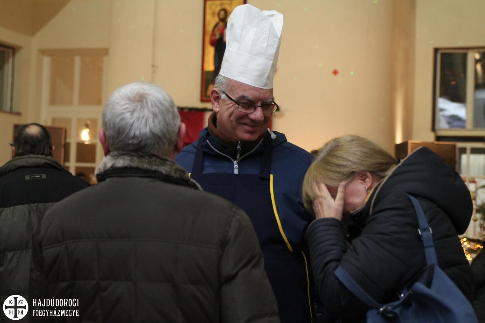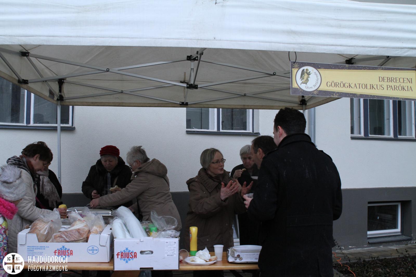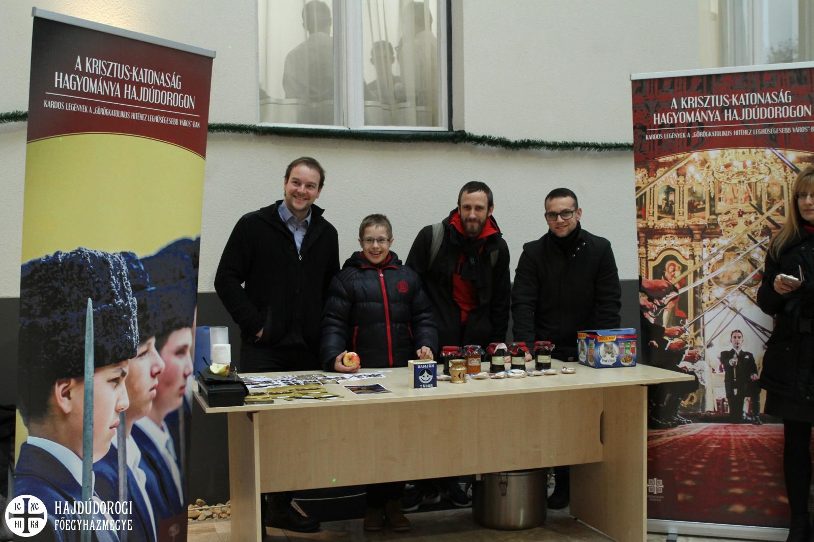 Az udvaron felállított sátrakban bemutatkoztak az egyházközségek: az ínyencek sorrendben kóstolták meg az utánozhatatlan csapókerti gofrit, majd a páratlan tócóskerti kőrözöttet, a kihagyhatatlan debreceni páros kolbászt, a ruszin forralt bort, az ellenállhatatlan téglási lepcsánkát, a Csaba atya féle józsai palacsintát és az íncsiklandó hajdúdorogi toroskáposztát! Aztán ha végzett az illető, tett még egy kört a sátrak között!