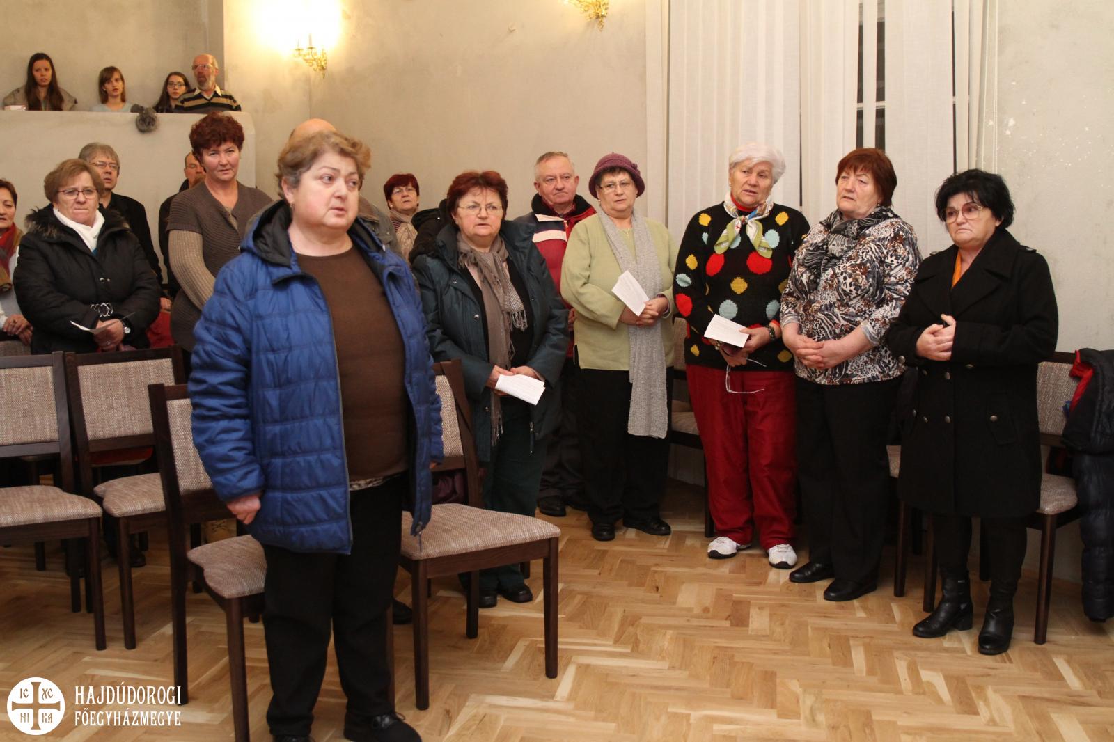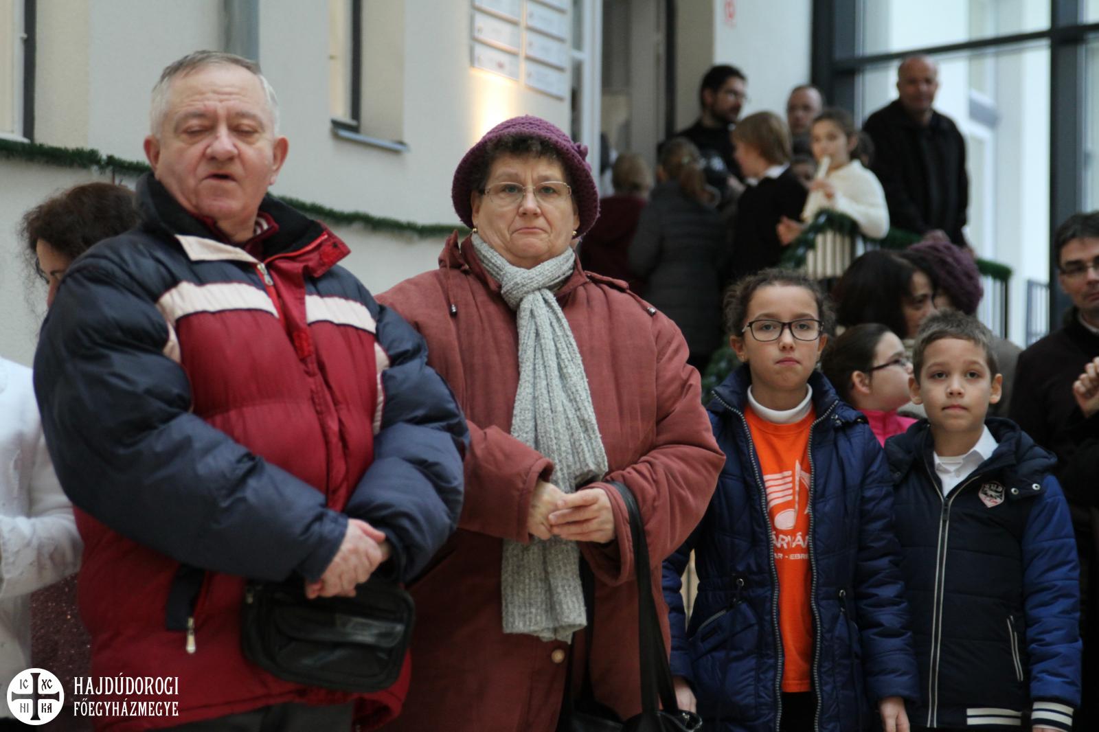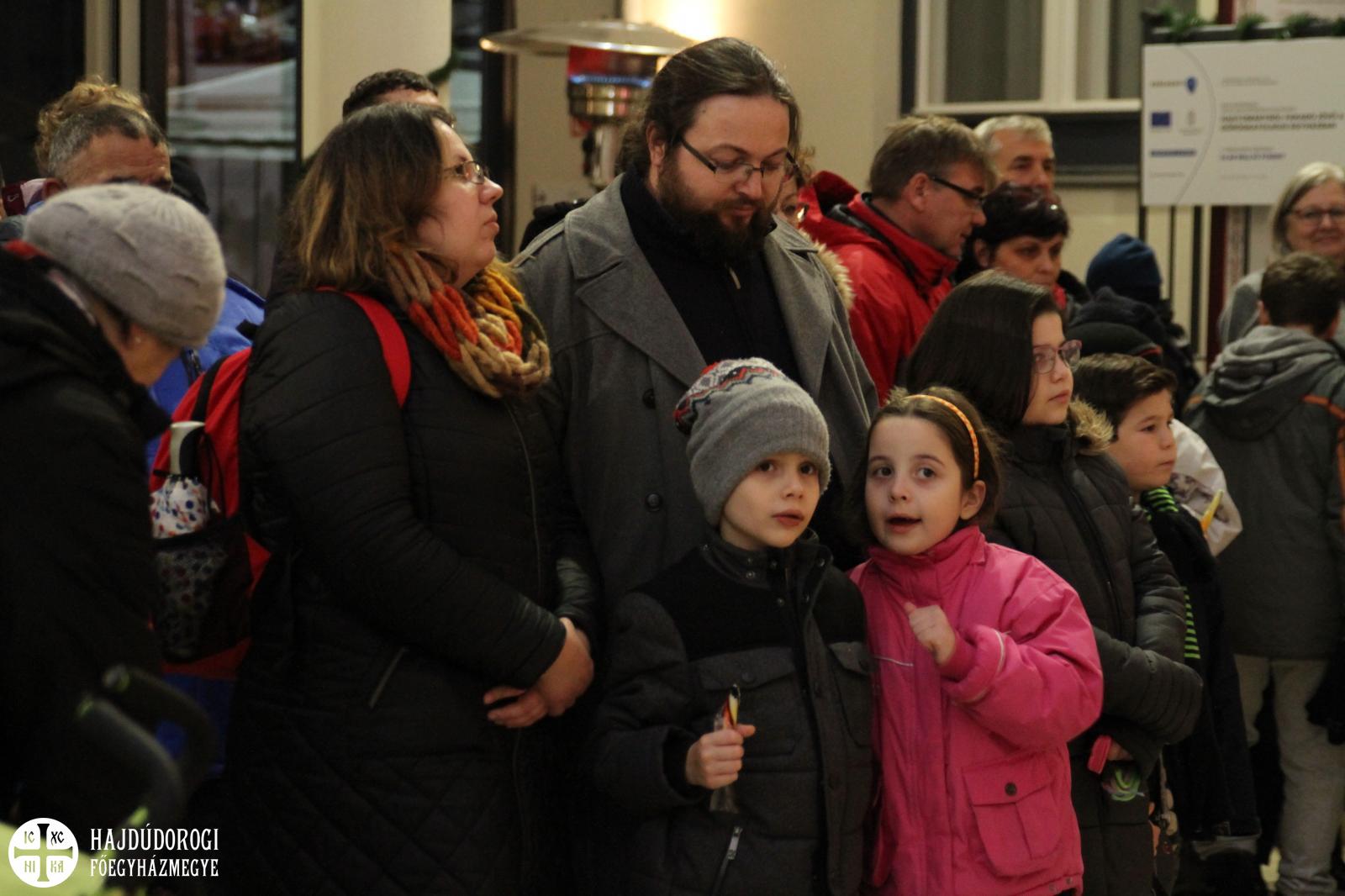 Egy meglepetés csoport is ellátogatott a programra: Debrecenben ugyanis ezzel párhuzamosan rendezték meg a Nemzetközi Betlehemes Találkozót, meghívásunkra pedig fellépett az Érseki Hivatalban Szemák Miklós atyával az élen a szatmári térség betlehemes csapata is!